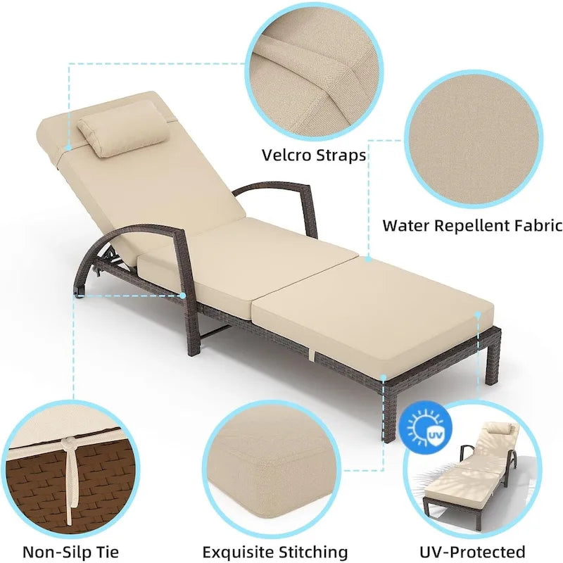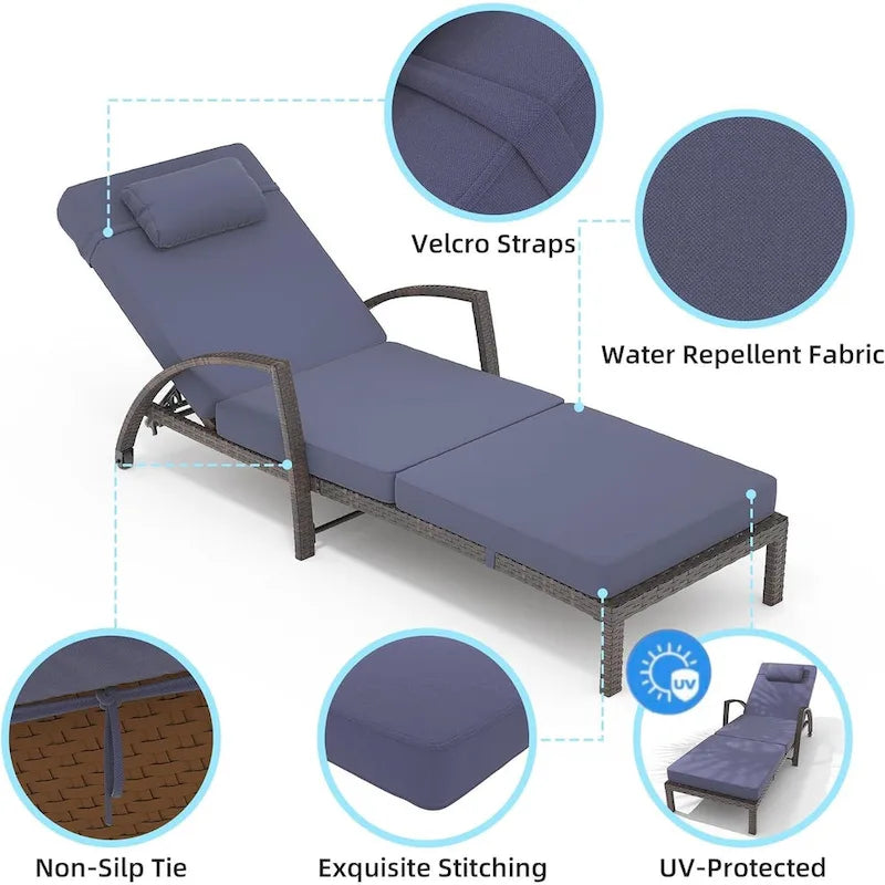 - Stylish Multi-Purpose Use: This adjustable chaise lounge chair enhances any outdoor space, adding charm to gardens, patios, or beaches. Its elegant design complements various aesthetics and provides a cozy spot for relaxation