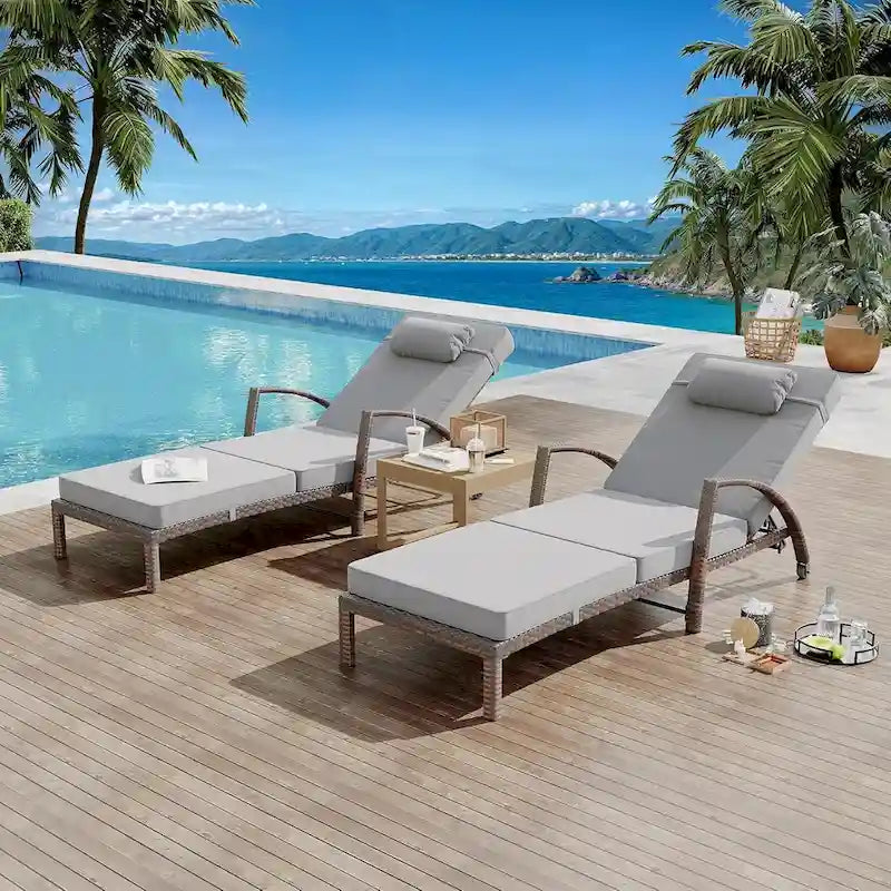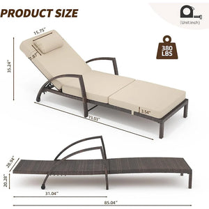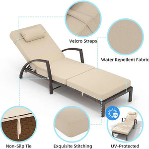 2-Piece Patio Chaise Lounge Chairs,Adjustable Position PE Rattan Wicker with Arm and Cushion