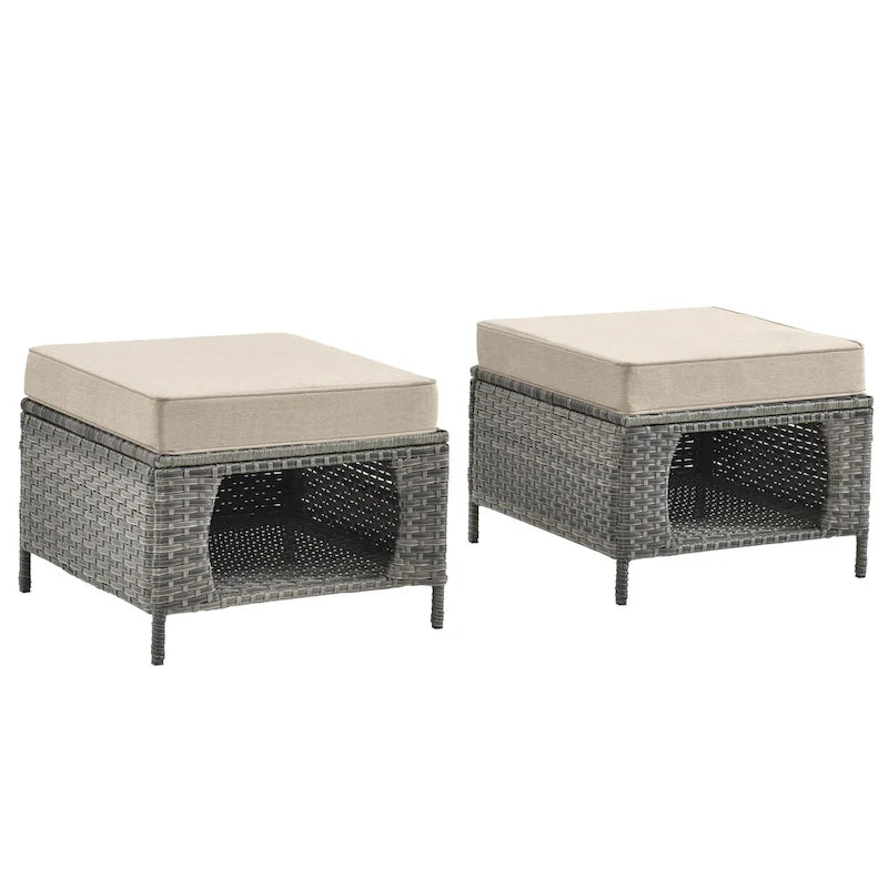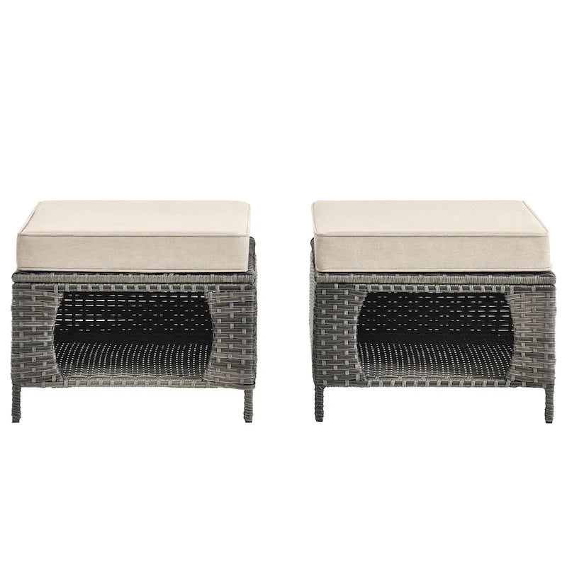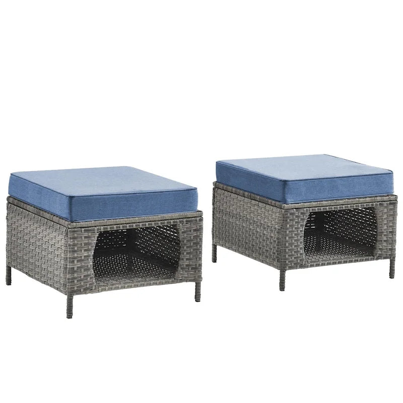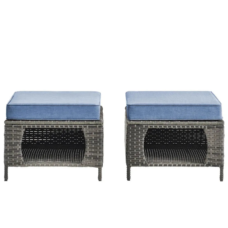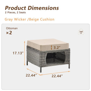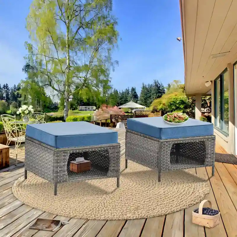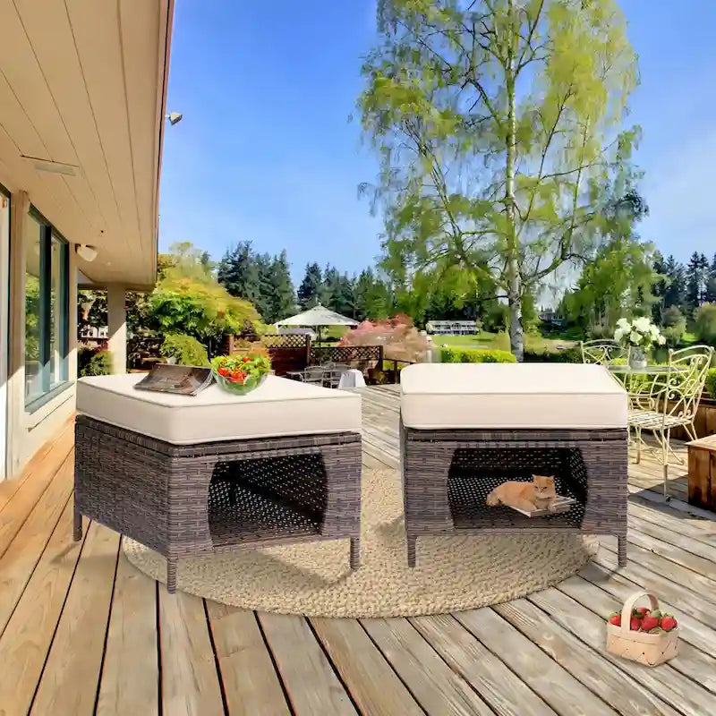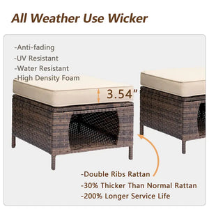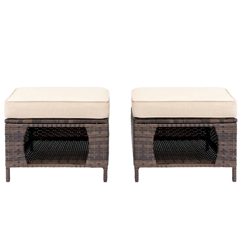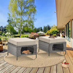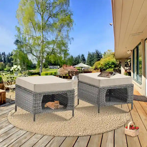 2 Pieces Outdoor Patio Furniture Rattan Storage Ottoman with Cushion