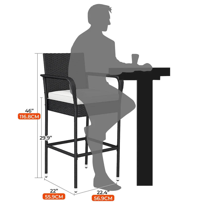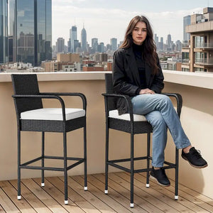 2Pcs Patio Bar Stools Wicker Barstools