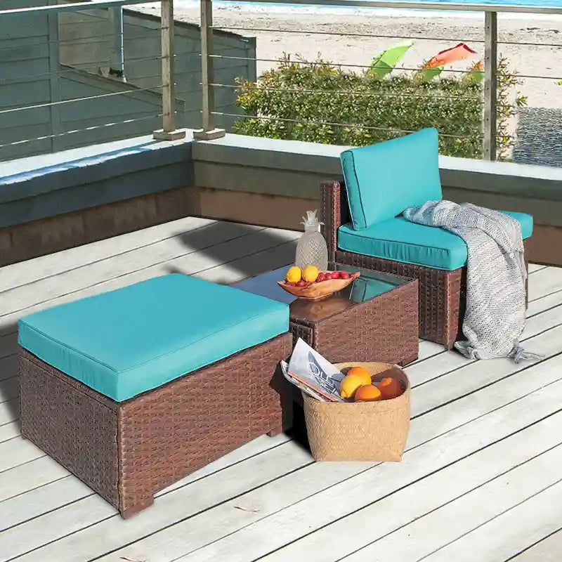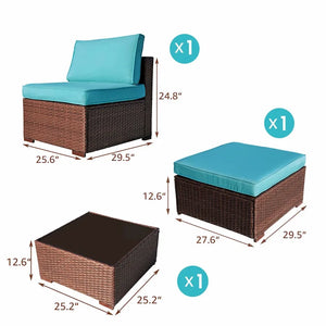 3-Piece Patio Sectional Sofa Set with Side Table and Ottoman