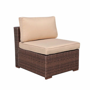 Enjoy your leisure time with our 3-Piece Patio Sectional Sofa Set, featuring an armless sofa, an ottoman, and a coffee table. These pieces are constructed with durable wicker and a powder-coated steel frame, ensuring longevity while adding a classic touch to your outdoor dcor. The side table comes with a tempered glass top, perfect for holding beverages or snacks during conversations. This outdoor sectional furniture set is lightweight and practical, making it ideal for expanding your seating area during parties or family gatherings in the garden.