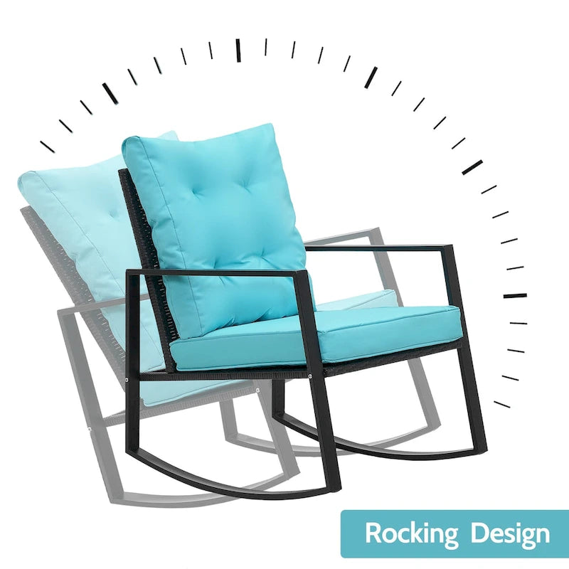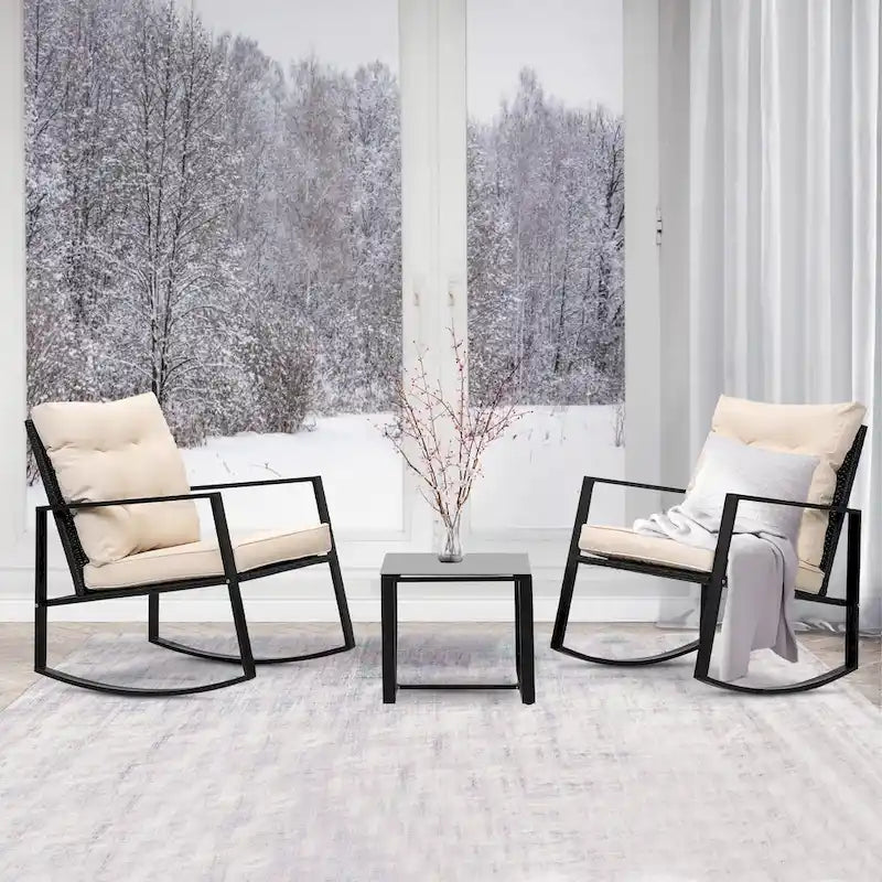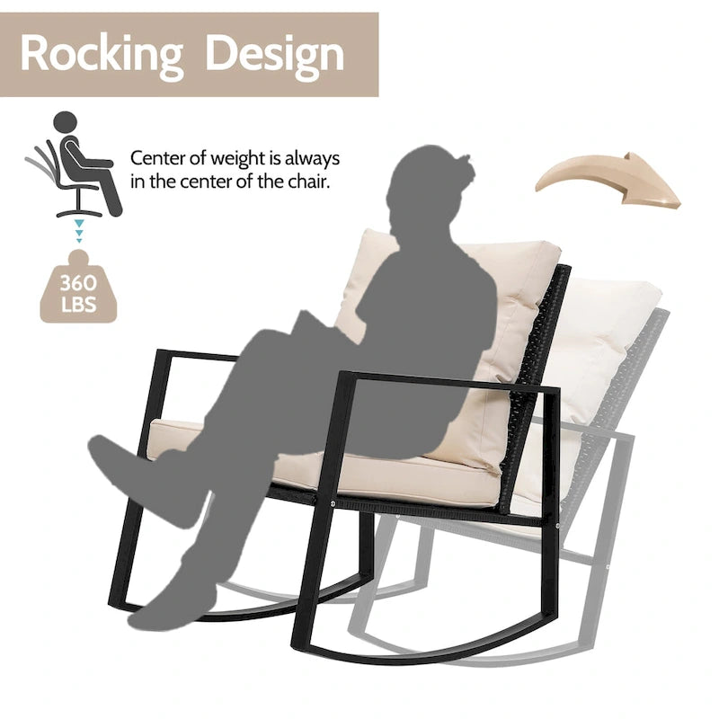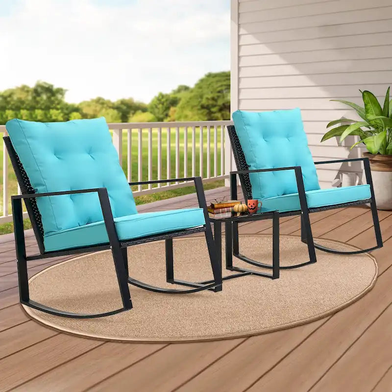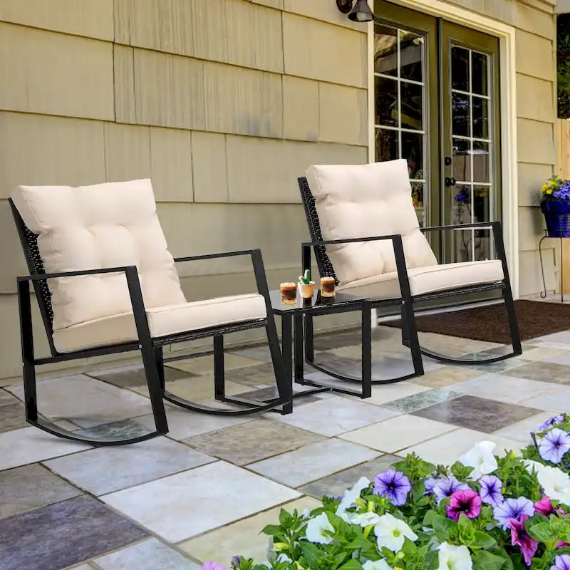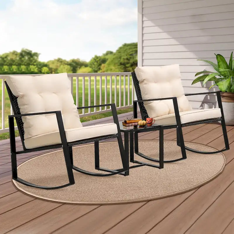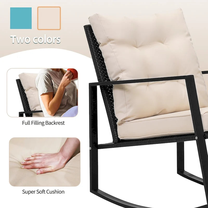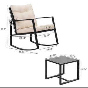 Wide Application: This contemporary outdoor sectional rocking bistro set, includes a tempered glass table to hold food and drinks satisfy your daily needs. A good choice for patio, porch, backyard, balcony, poolside and so on.