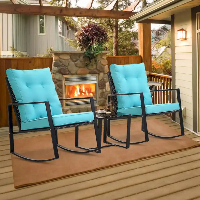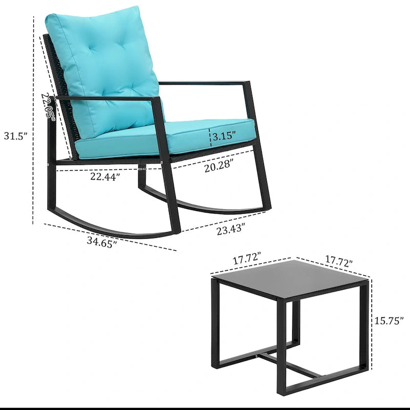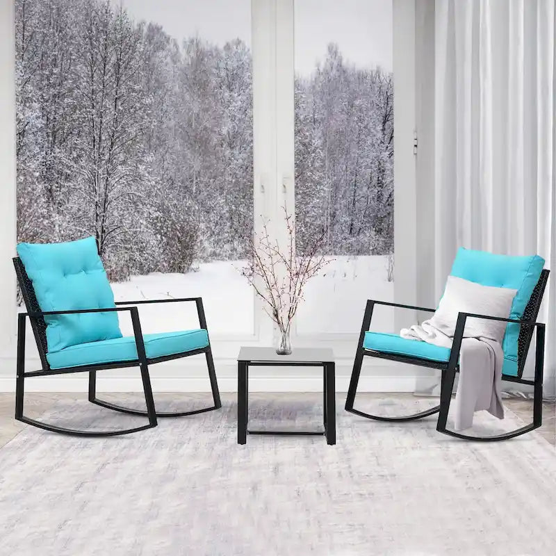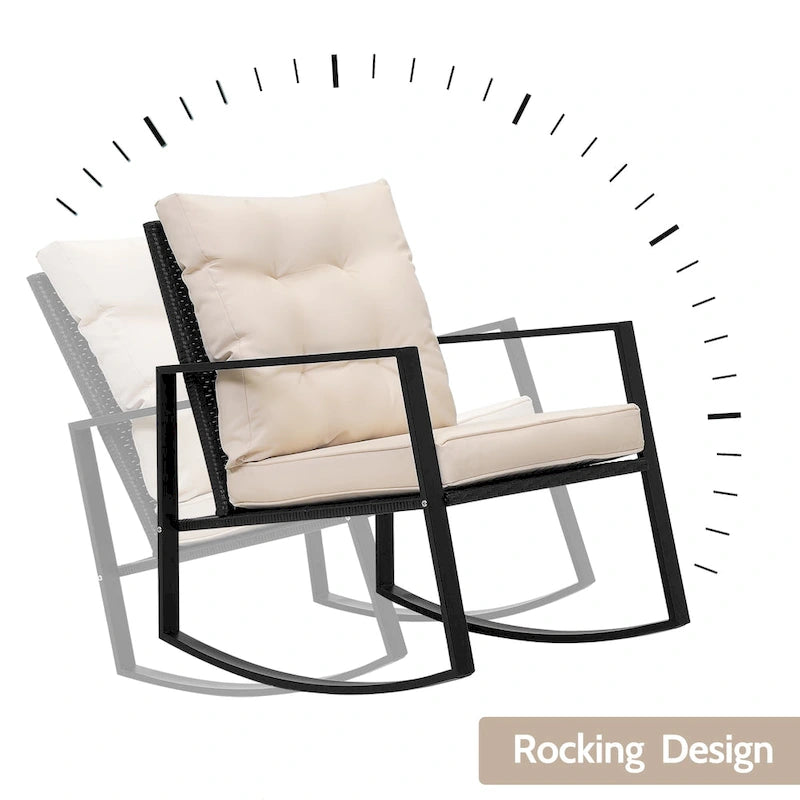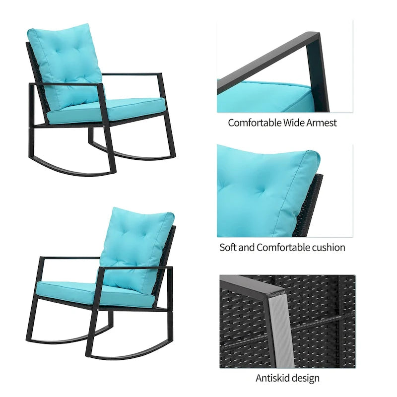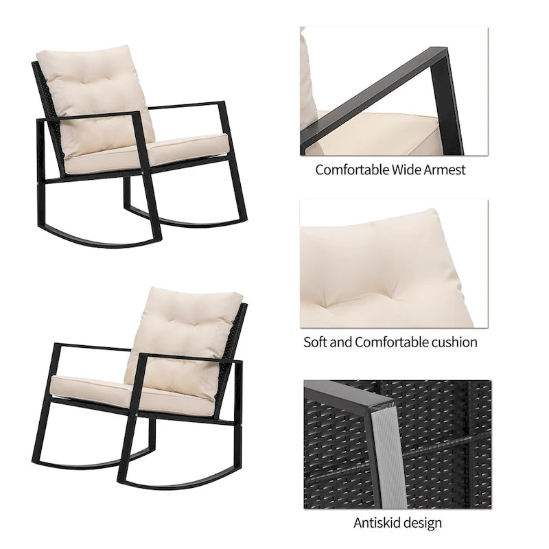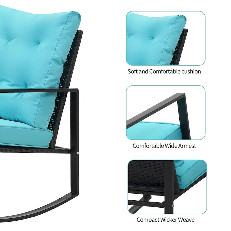 Wide Application: This contemporary outdoor sectional rocking bistro set, includes a tempered glass table to hold food and drinks satisfy your daily needs. A good choice for patio, porch, backyard, balcony, poolside and so on.