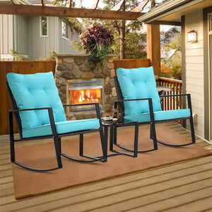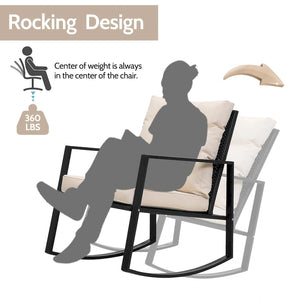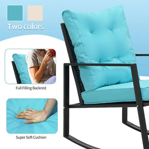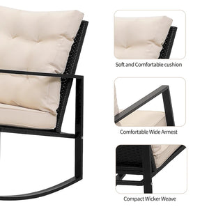 3 Pieces Rocking Wicker Bistro Set,Outdoor Patio Chairs w/ Coffee Table