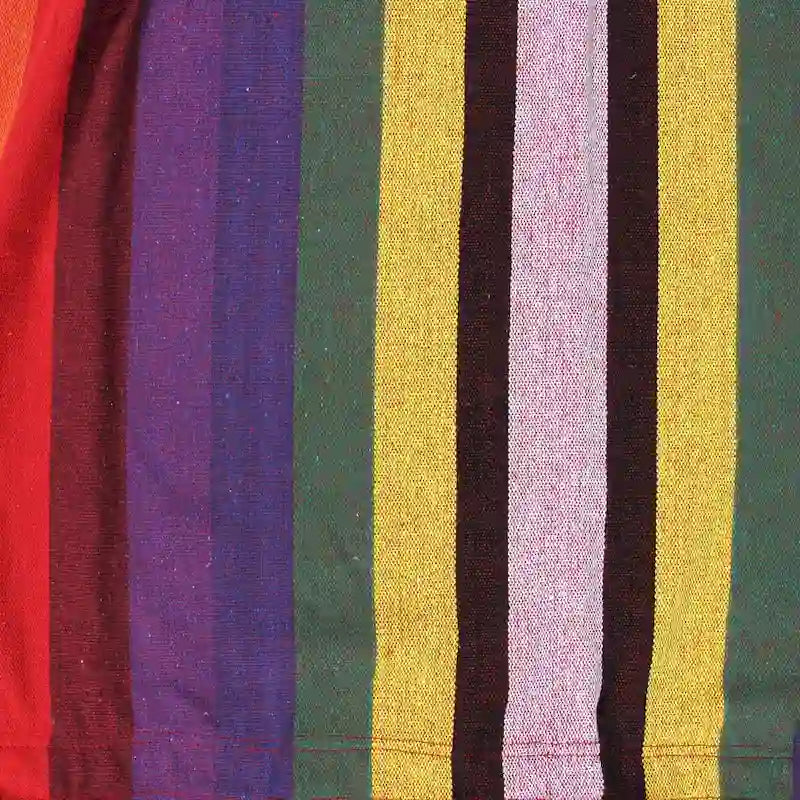 Relax in style with our bold Brazilian portable hammock. A comfy addition to your outdoor space. The woven hammock features a thick multi-color striped pattern. Perfect for hanging between trees on your balcony or in a hammock stand.