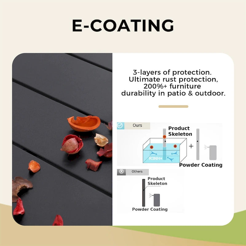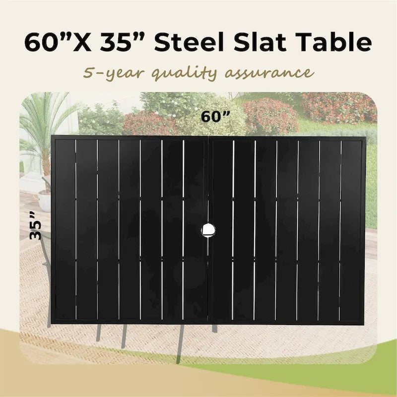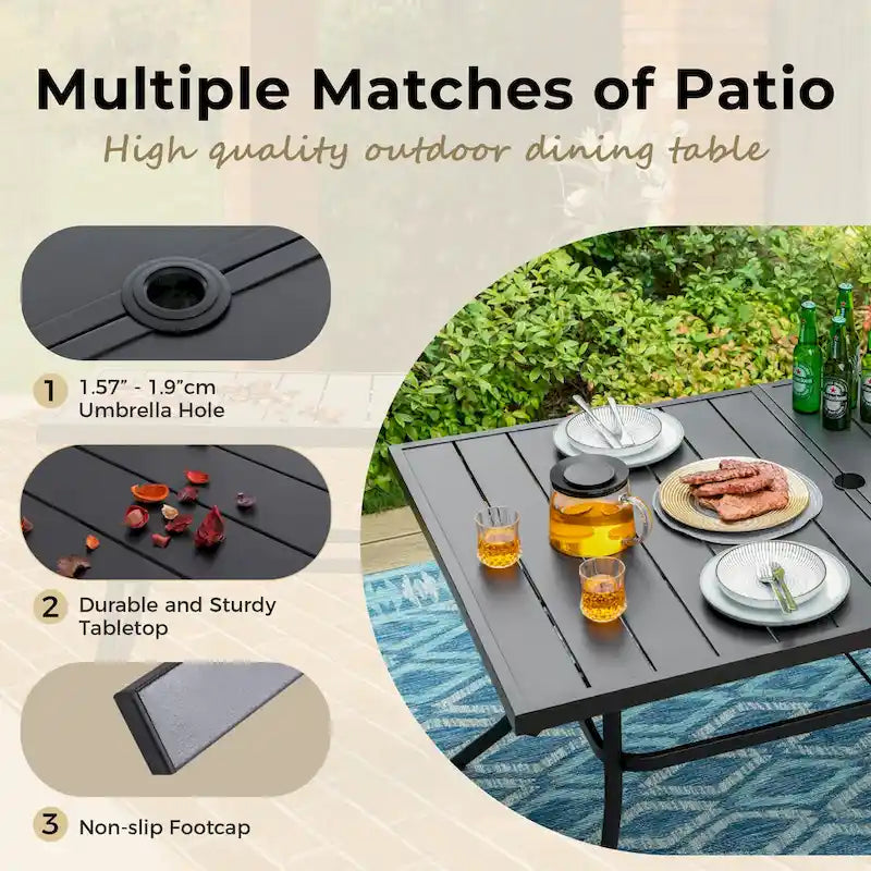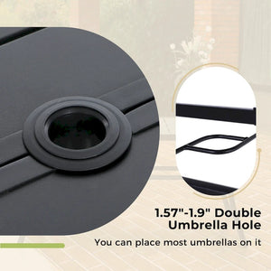 - Table with umbrella hole suitable for most outdoor umbrellas