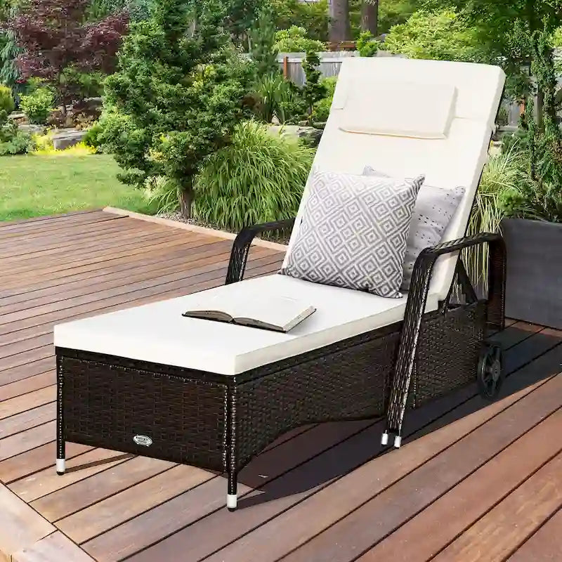 Adjustable Patio Lounge Outdoor Rattan Cushioned Chaise Recliner