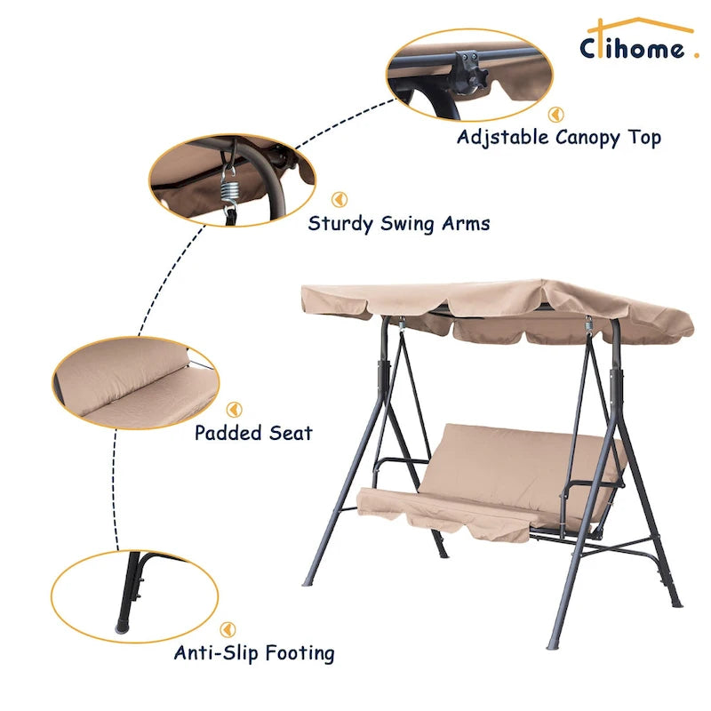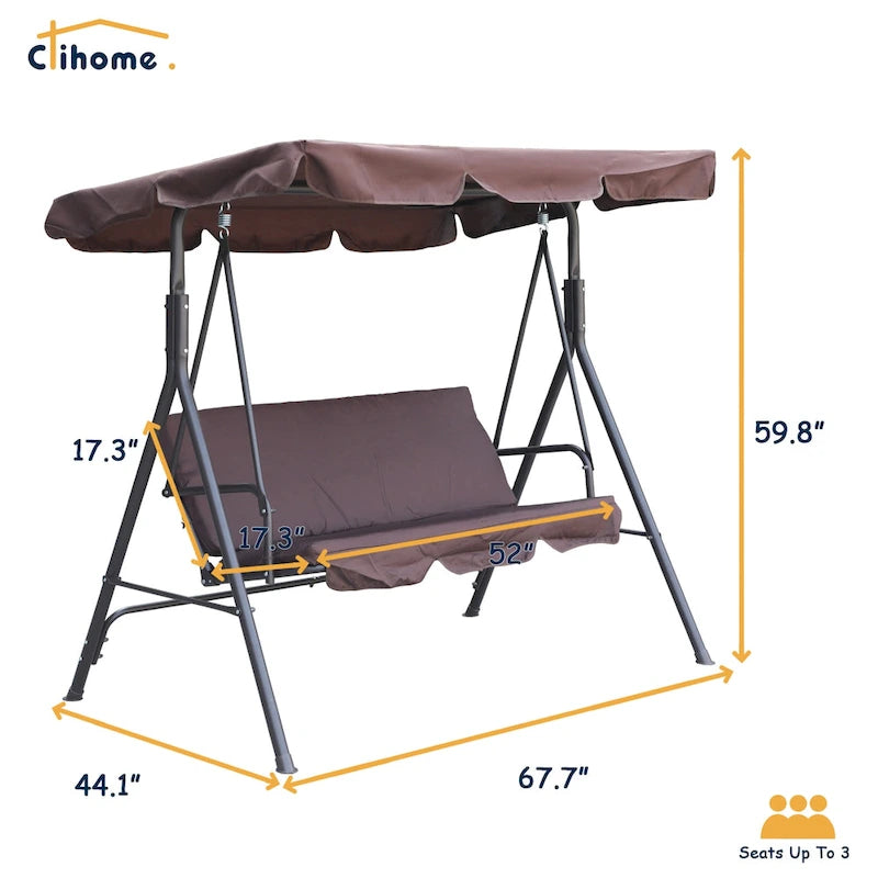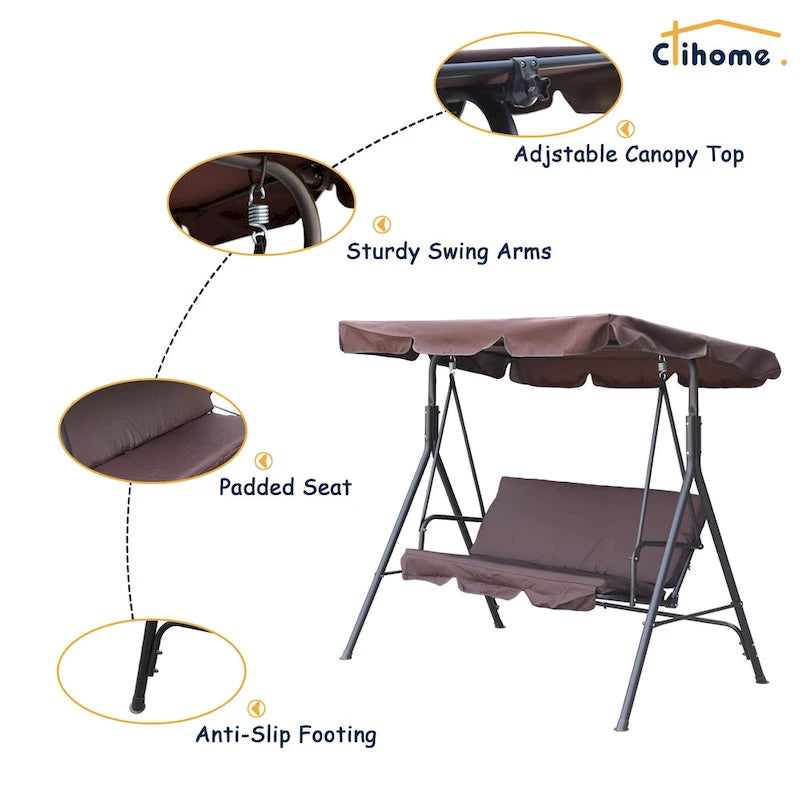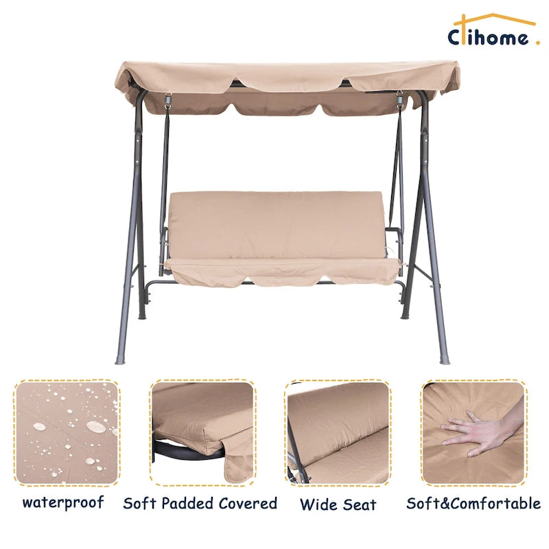 Clihome 3 Person Outdoor Porch Swing with Removable Cushions