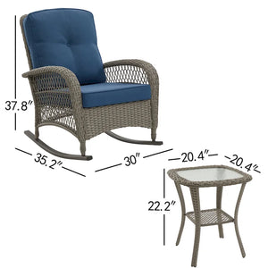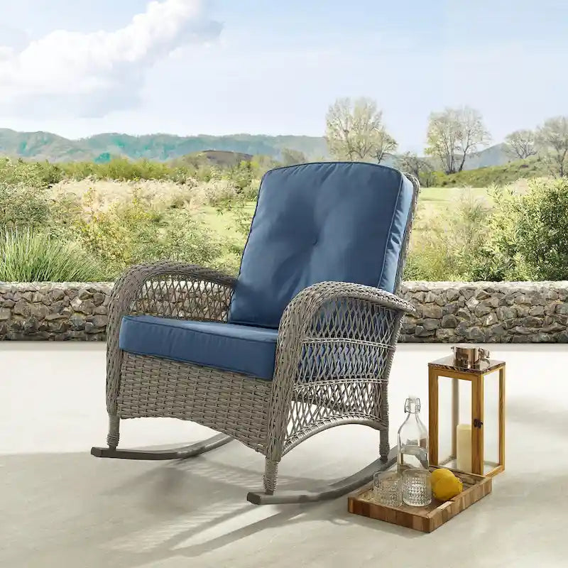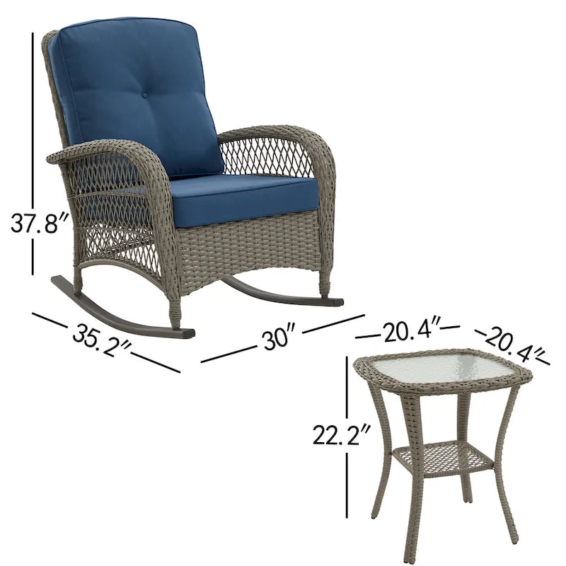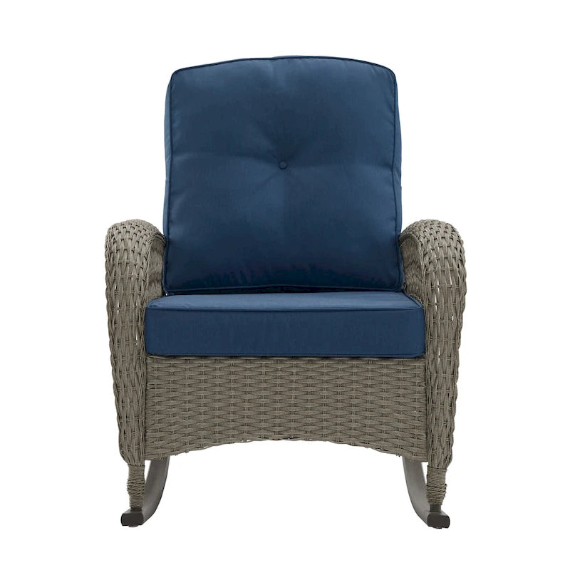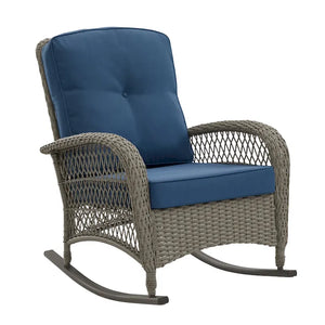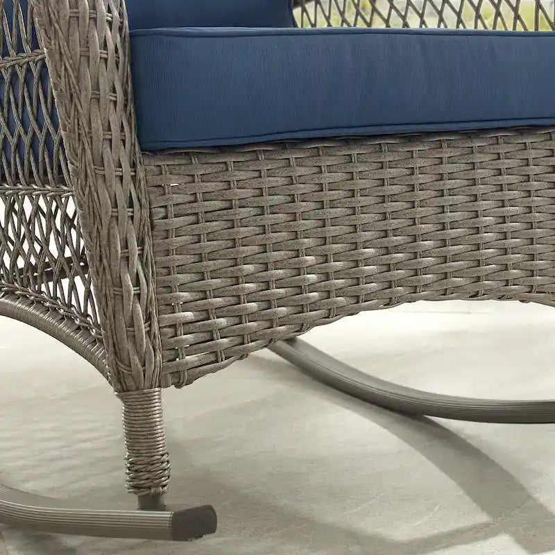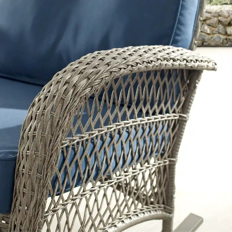 Relax and enjoy your backyard or patio space in style with this wicker conversation set. Made of hand-woven resin wicker over a metal frame, this stylish and durable outdoor rocking chair is built to last, rain or shine. With the included plush cushions on the seat and chairback, this rocking chair is perfect for lazy summer evenings.