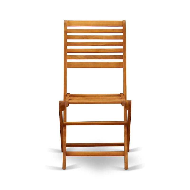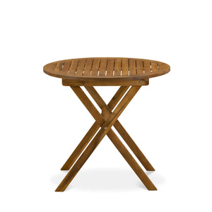 East West Furniture Outdoor Conversation Bistro Set Contains a Round Wood Coffee Table and 2 Folding Side Chairs, Natural Oil