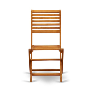 Our patio table set enhances the elegance of any outdoor space. This 3-piece outdoor patio set consists of a foldable table and 2 matching wooden side chairs and will make a perfect addition to any garden, terrace, outside, backyard or patio for chatting with family and friends or just enjoying the weather. Our outdoor patio set is not only suitable for outdoor use but can also be placed indoors. This outdoor dining table set adds a feeling of beauty to any deck area, which is compatible seamlessly with any decor. This wood patio set is made with a footrest and backrest that creates a comfortable setting experience for you and reduces fatigue. The compact style ensures that our outdoor patio set can be stored in any narrow space or you can take this set with you for camping. The outdoor dining table set is innovative and beautiful is ideal for styles. Our gorgeous patio table set is sturdy and durable. Our patio dining set is made from durable Acacia wood for elegance and long-lasting durability. Acacia wood is perfect as a hardwood frame that resists wear and tear. This patio table set is created of superior quality solid wood to offer fantastic durability and stability. You can easily clean up this patio bistro set with a damp towel. Our patio bistro set is quite simple to clean and always gives a beautiful appeal.