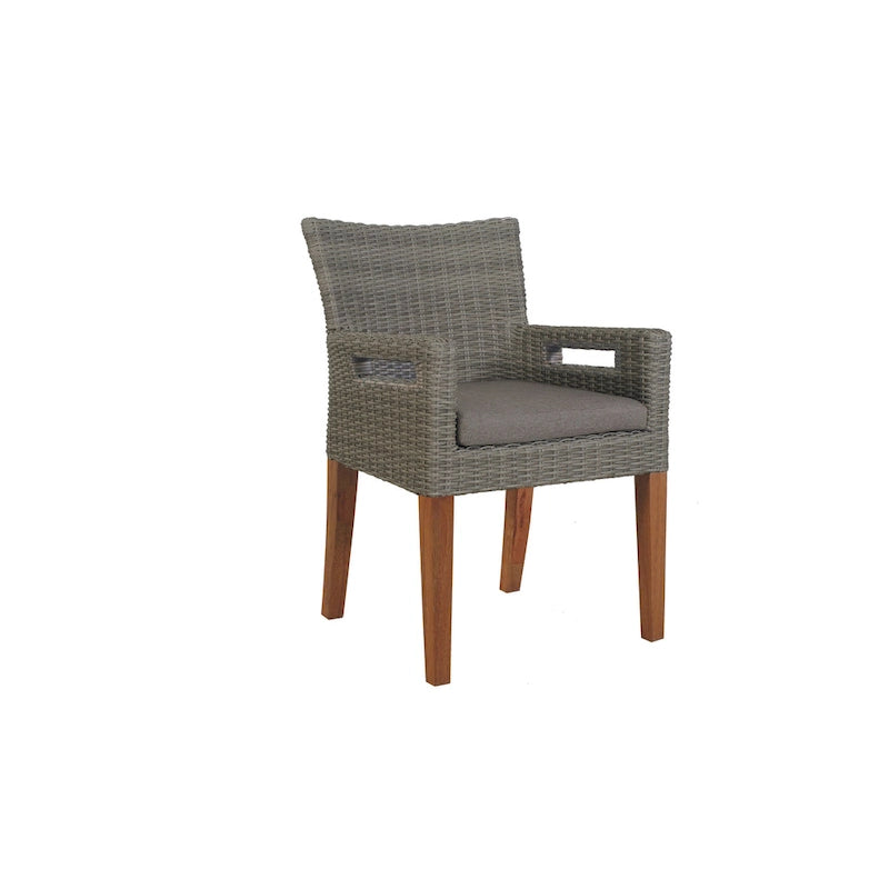 Refresh your dated or weathered outdoor seating with the Wicker & Eucalyptus Armchairs. These stylish pieces are crafted from sturdy eucalyptus and all-weather woven wicker. Their warm wood tones and gray coloring adds a relaxed style to your patio or garden design.