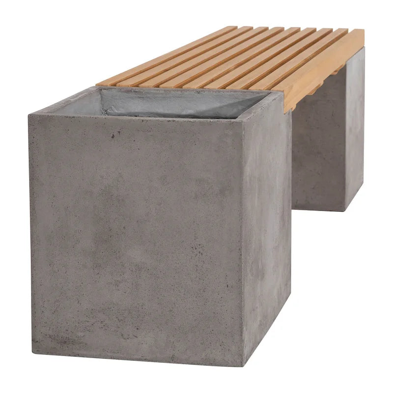 Ezra 67-inch Indoor-Outdoor Concrete and Teak Planter Bench - N/A