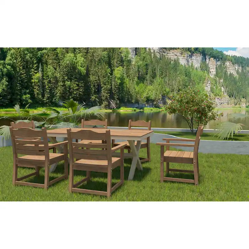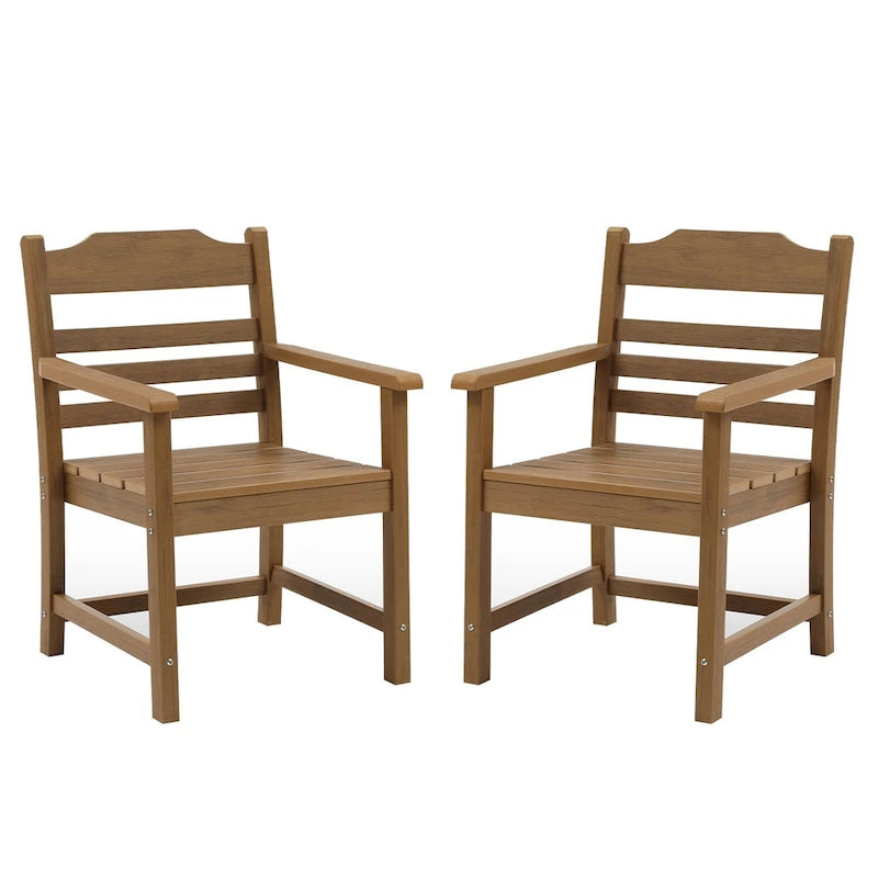 Farmhouse Dining Chair with Armrest Set of 2, Patio Bar Stools, Outdoor Furniture Slat Back Solid Wood Seat Chairs