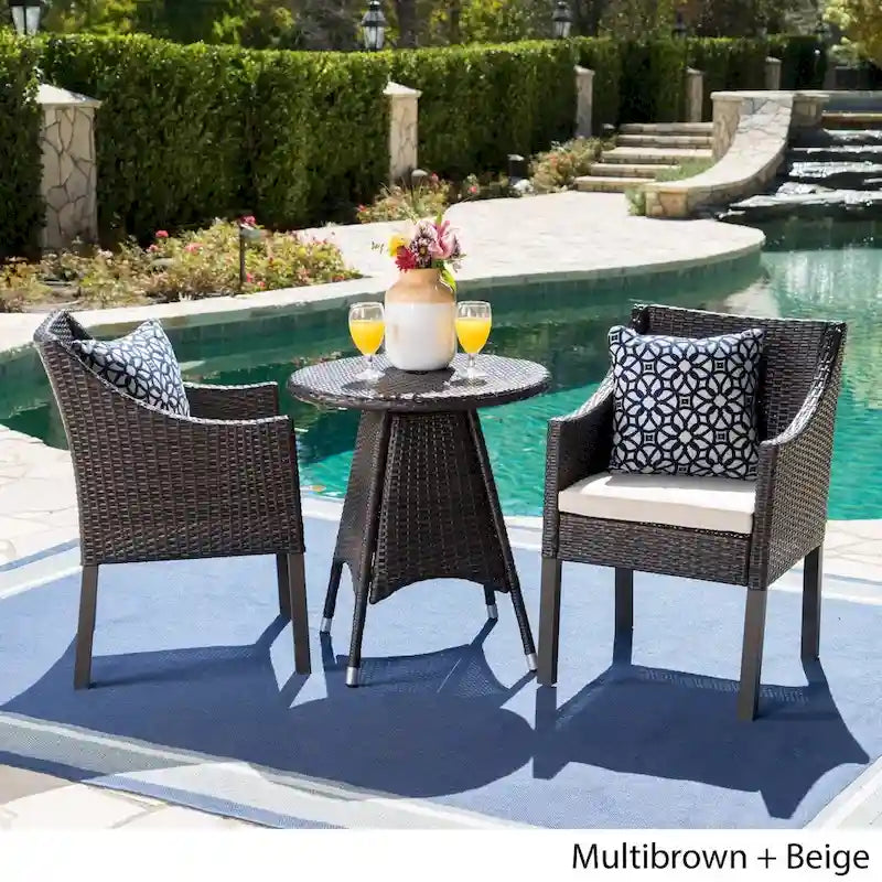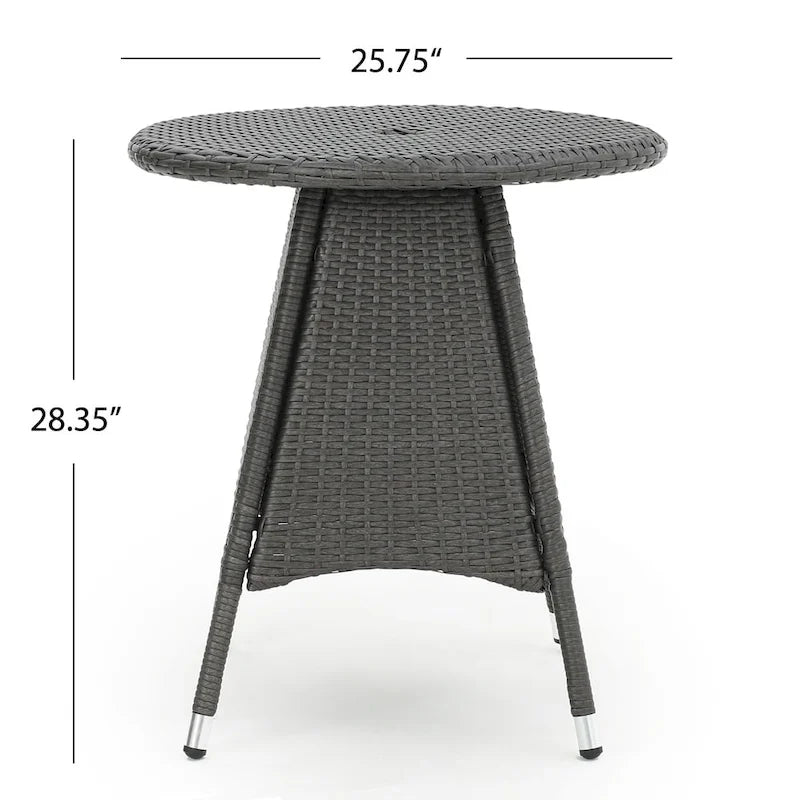 Franco Outdoor 3-Piece Round Wicker Bistro Chat Set with Umbrella Hole & Cushions by Christopher Knight Home - N/A