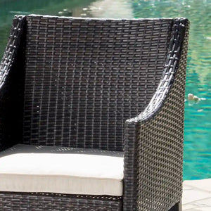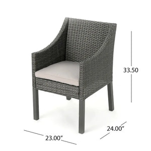 This clean and simple dining set combines the functionality of iron with the comfort of wicker. Complete with a table, and 2 wicker dining chairs, this set offers comfortable seating in the great outdoors. Sure to complement any patio decor, this dining set offers you a stylish wicker design with the functionality of an iron framework and comfortable cushioned chairs, guaranteed to give you a weather resistant set that will last your for years to come.