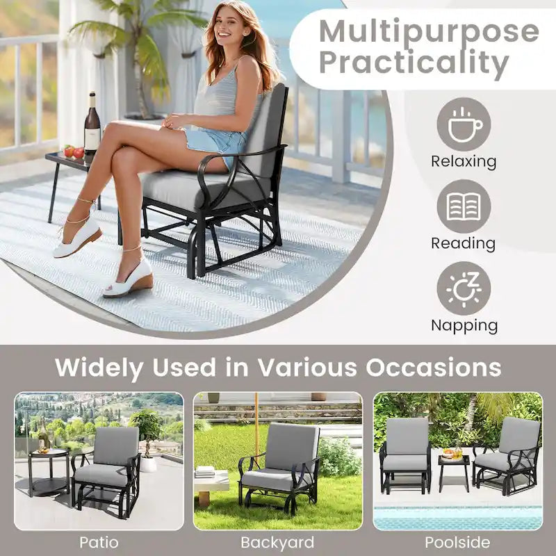 Gymax Patio Glider Chair Single Outdoor Rocking Chair w/ Seat & Back