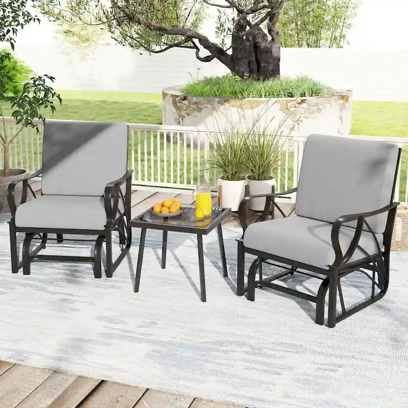 Indulge in unparalleled comfort with our glider chair, featuring thick seat and back cushions with soft fillings for superior coziness. The removable zippered covers make cleaning a breeze, while the hook and loop fasteners ensure the cushions stay in place. Experience smooth and stable gliding thanks to the robust gliding arms, providing a gentle rocking motion that relieves fatigue without any distracting noise. Heavy-duty metal frame offers reliable support and long-lasting durability. Enjoy ergonomic seating with high-quality, breathable fabric that resists tearing, along with curved armrests for added relaxation.