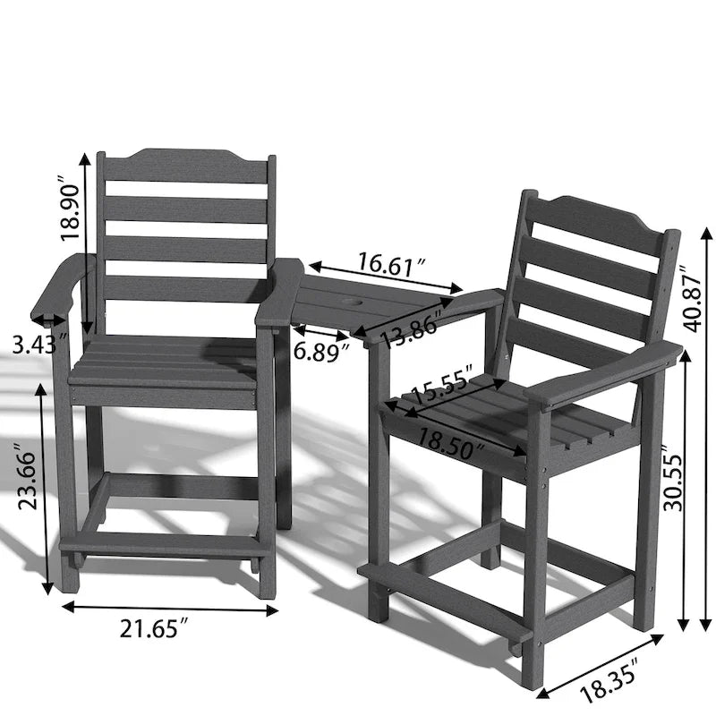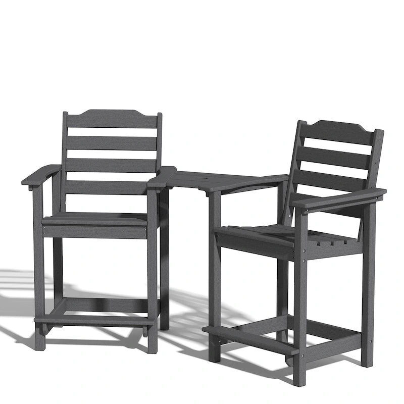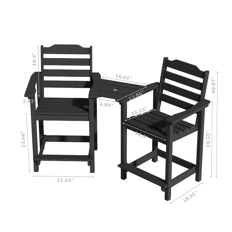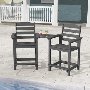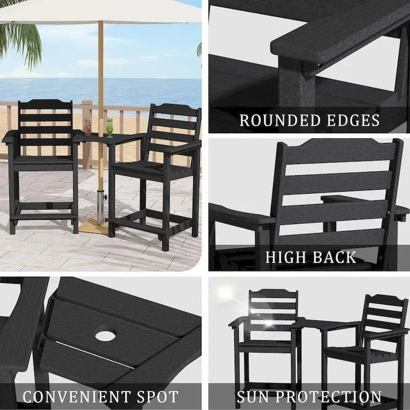 HDPE 2-Piece High Bar Stool Set with Umbrella-Compatible Connecting Table