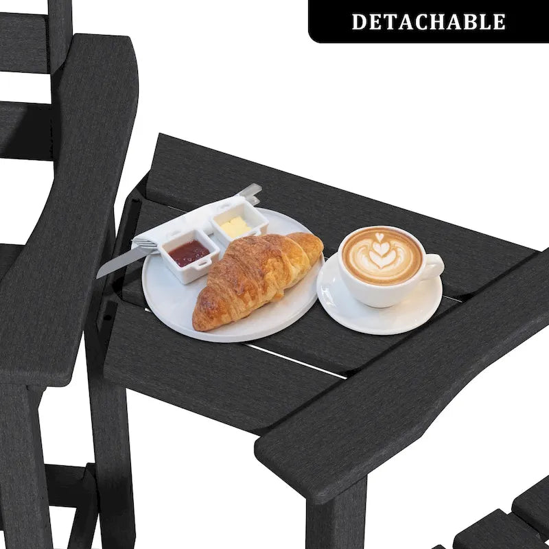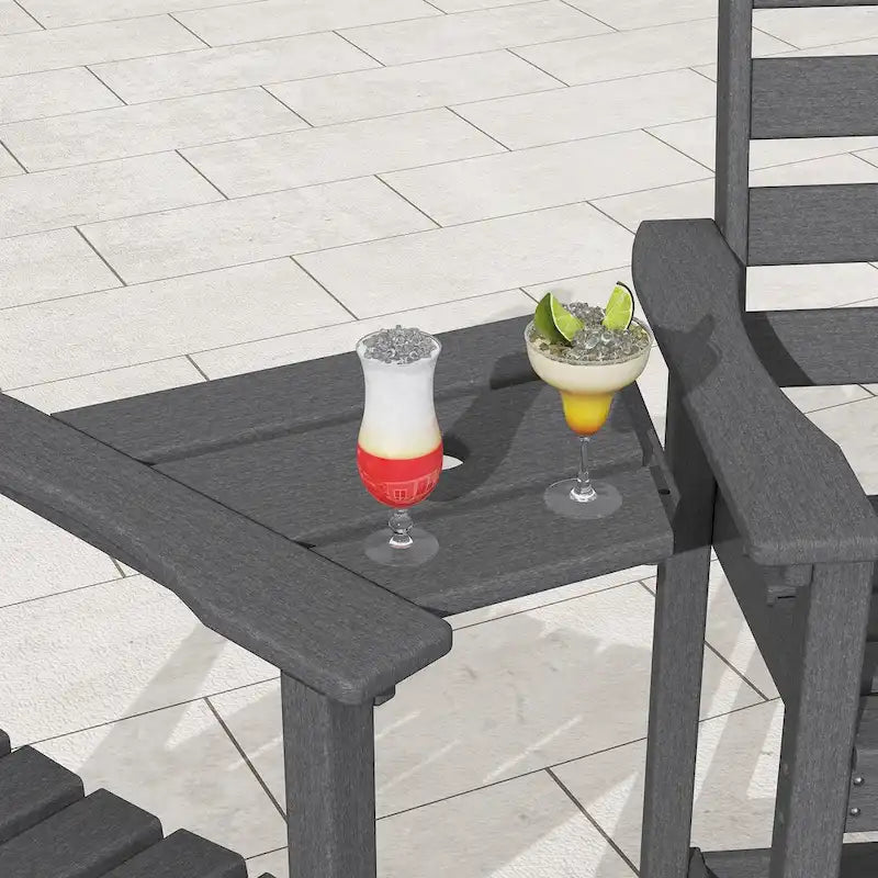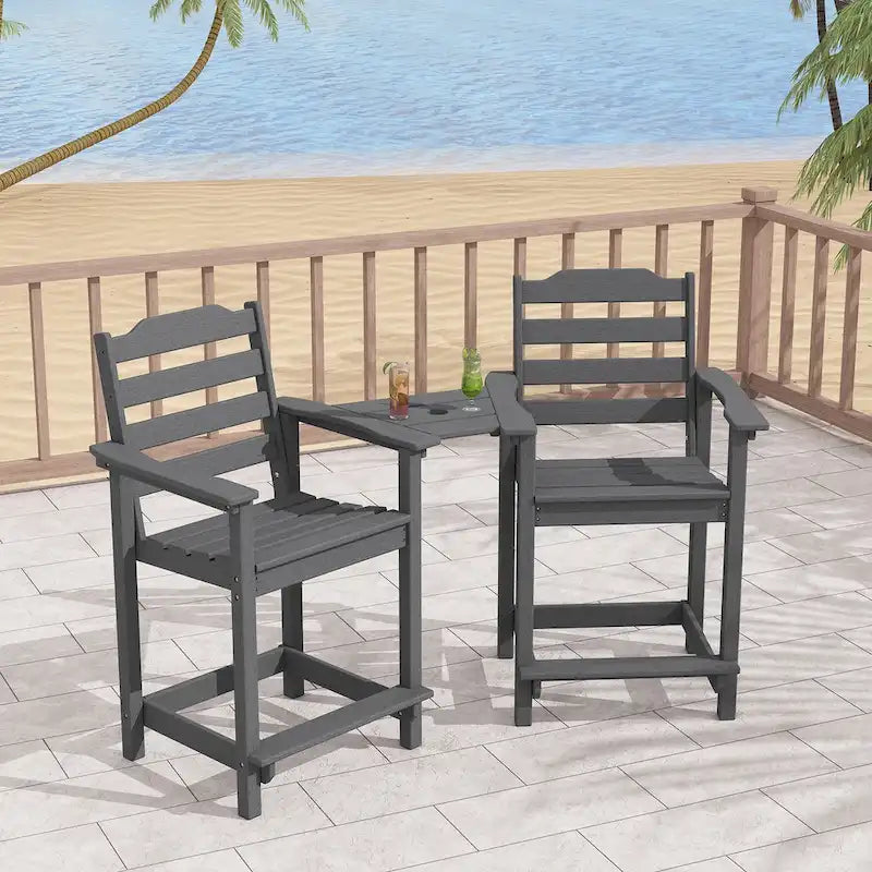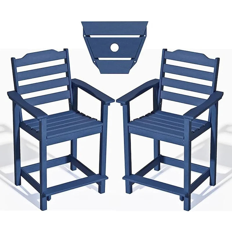 - Adirondack Bar Chairs with a detachable tray for holding drinks and snacks, featuring an umbrella hole for shaded outdoor enjoyment.