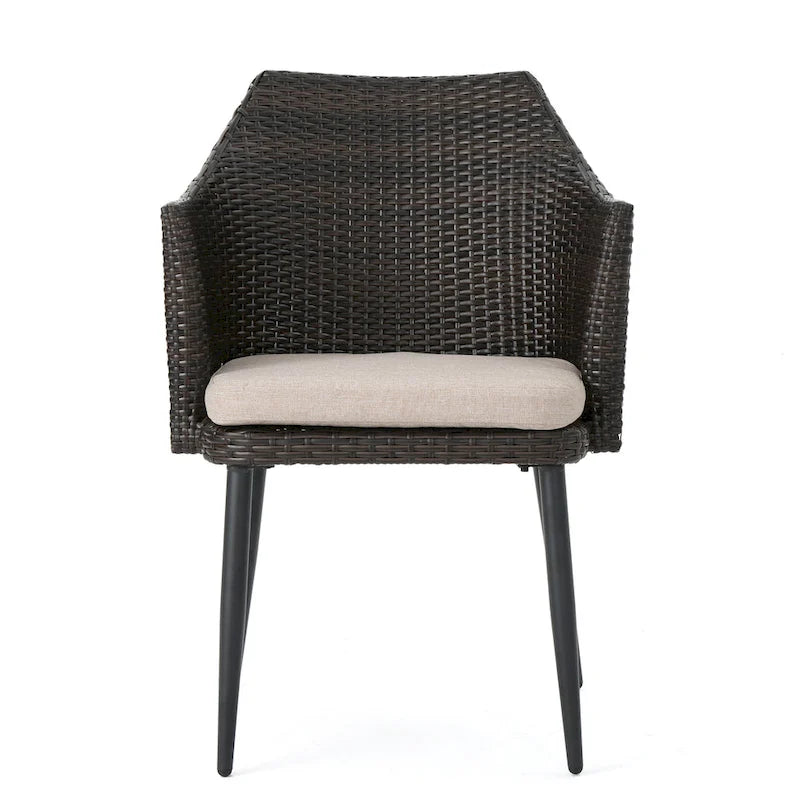 The perfect outdoor dining chair, offering everything you would want: durability, attractiveness, and quality. Made from water-resistant cushions and high-quality wicker over an iron frame, these will be the stars of your back yard.