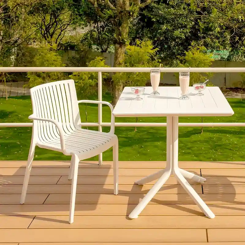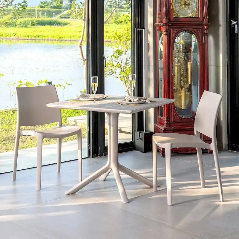 Inspired by the renowned St. Mark's Square, the Venice Table stands as a signature piece from Lagoon. With its lean, simple, and elegant profile, the Venice seamlessly enhances balconies, courtyards, and commercial spaces. Constructed entirely of resin with the best available anti-UV agent, this table withstands tough conditions without fading or degrading. It is available in a range of four tasteful colors. Durable against all weather elements making it the perfect choice for outdoor and indoor use. The anti-slip pads at the bottom of legs ensure stability and prevent scratches to floor. Assemble table at ease, no extra tools required. Wipe clean with water.