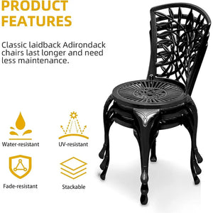Introducing our Outdoor 2-Piece Cast Aluminum Chair Set, the ideal addition to your outdoor dining experience. Constructed from sturdy cast aluminum, these chairs boast a mesh back and seat for maximum comfort. The classic antique bronze finish is weather-resistant and effortlessly complements any outdoor style. The timeless design, featuring a vintage copper finish and elaborate metal scroll work, brings a touch of sophistication to any space. Perfect for your backyard, patio, deck, or restaurant outdoor dining area, these chairs will leave a lasting impression on your guests and offer lasting comfort for years to come.