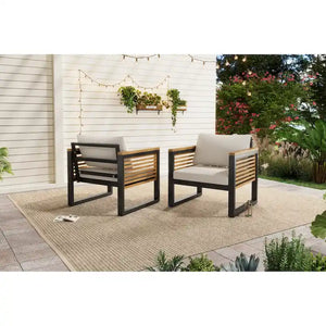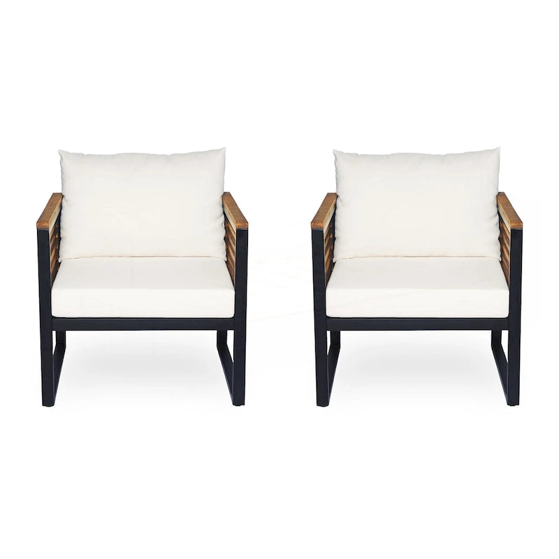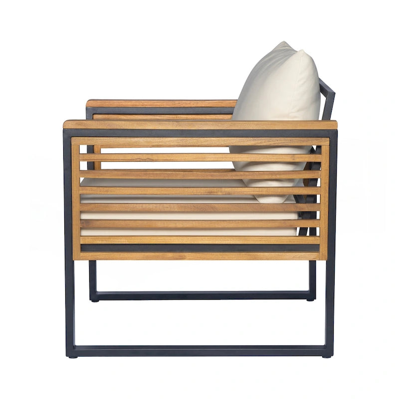 Outdoor Acacia Wood and Metal Patio Chair with Cushions