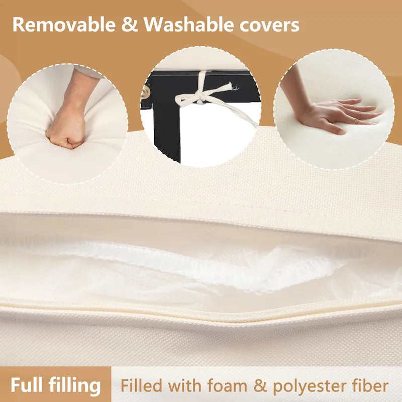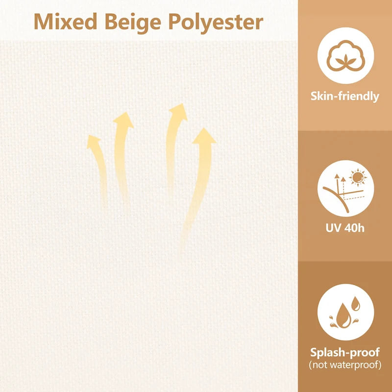 Water-repellent upholstery: 300D polyester fabric with PU coating (beads water at 110 contact angle)