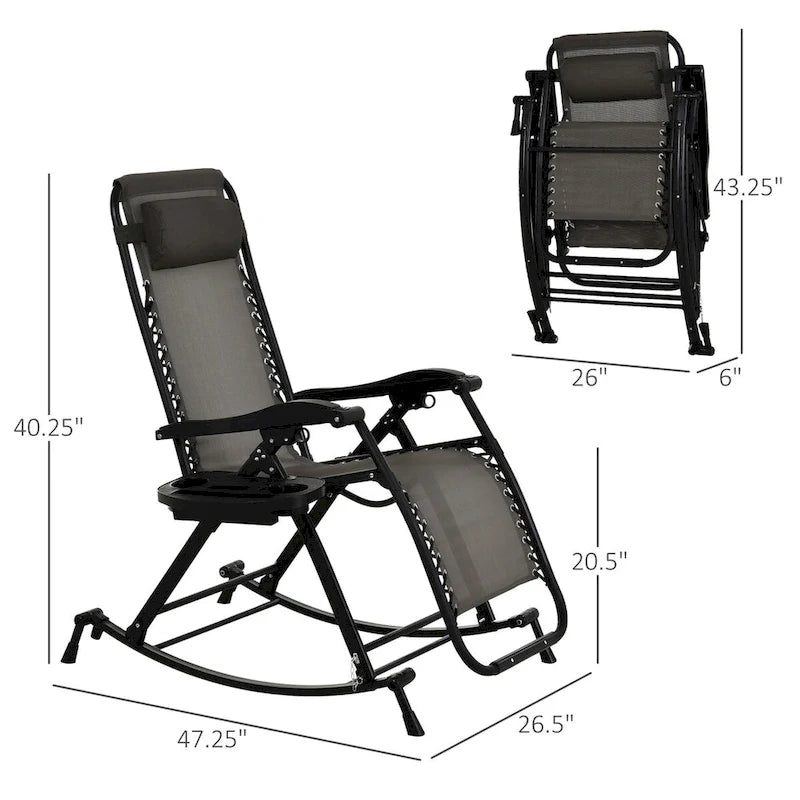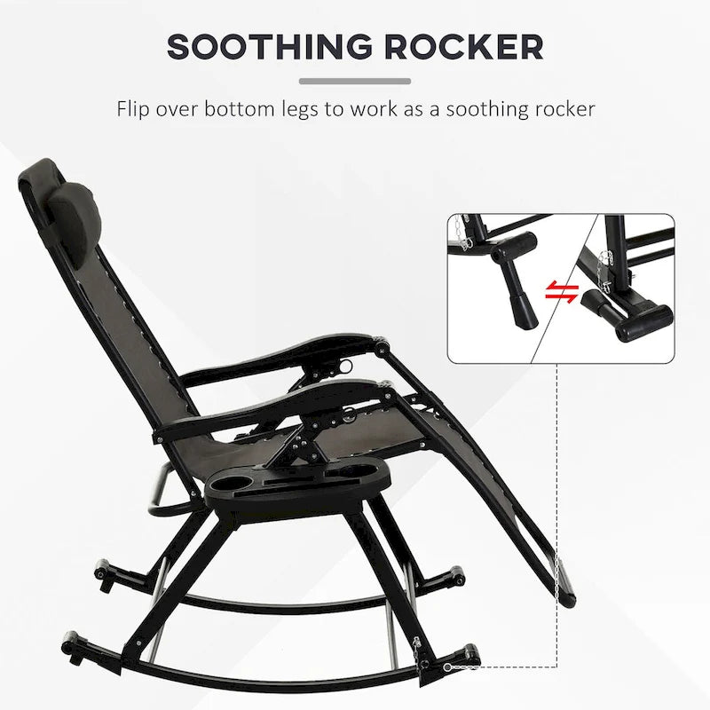 Outdoor Foldable Reclining Anti Gravity Lounge Rocker/Rocking Chairs, with Pillow,Cup & Phone Holder,Combo Design with Folding Legs