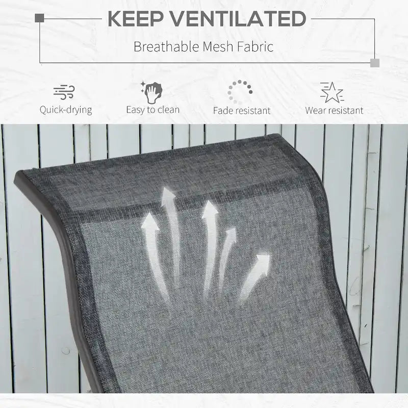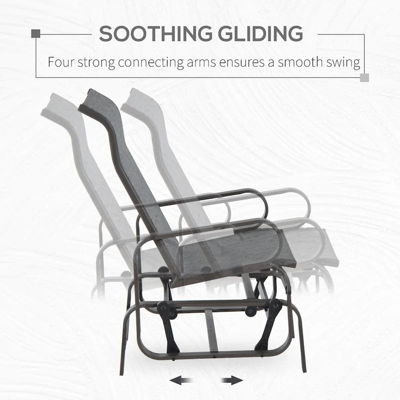 - Mesh Fabric: Our outdoor glider chair is built with breathable sling fabric that keeps you cool in the summer heat by letting in the wind. It's water resistant and quick to dry, too, meaning you won't have a long wait after rain.