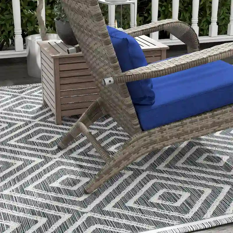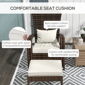 Sit back and relax in style with this wicker Adirondack chair with ottoman. Featuring a high back, wide seat, and comfortable armrests, this chair offers the perfect spot to unwind by the fire pit or on the patio. The included ottoman allows you to stretch out, while the thick padded cushions provide extra comfort. Handwoven PE rattan gives it a stylish wicker look, and the durable steel frame ensures long-lasting stability, making it an excellent addition to any outdoor space.
