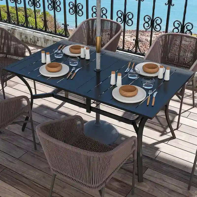 Rectangle Outdoor Dining Table with Umbrella Hole, Steel Frame