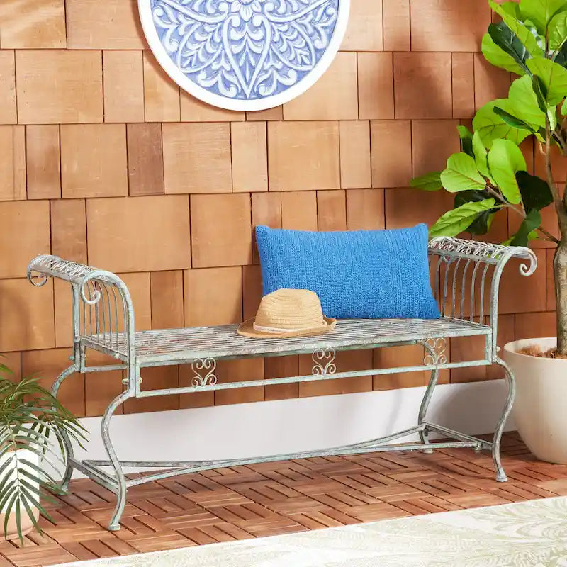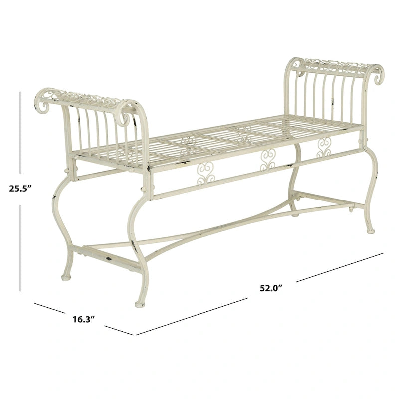 SAFAVIEH Outdoor Kyara Victorian Iron 52-inch Bench - 52Wx16Dx26H
