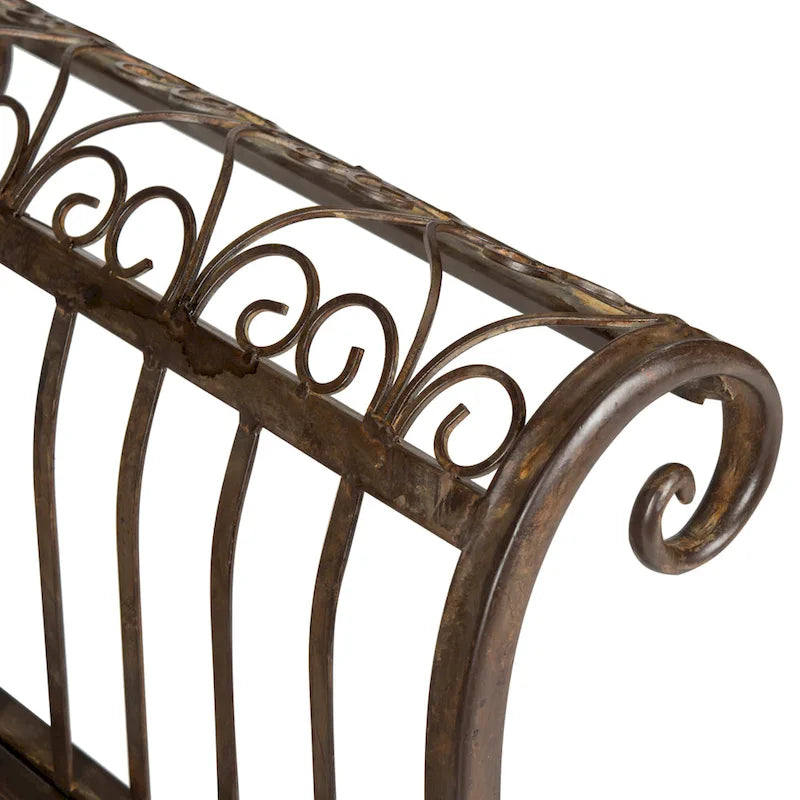 The enchanting designs of the Victorian era come to contemporary outdoor decor in this elegant Bench. Crafted of finely sculpted iron in a finish, this piece's intricate scrolls and heart shaped details lend your garden or patio a vintage touch of romance.
