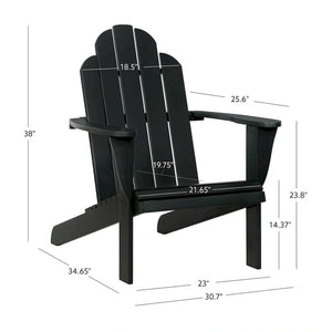 Known for its distinctive design featuring a slanted back, wide armrests, and a low slung profile, our Adirondack chair is where comfort meets style for your outdoor oasis! Crafted from durable acacia, this chair boasts a sleek black finish that complements any setting. Light assembly required ensures quick setup, allowing you to enjoy leisure time in no time. Elevate your outdoor experience with this inviting Adirondack chair, the perfect blend of charm and coziness for your relaxation station!