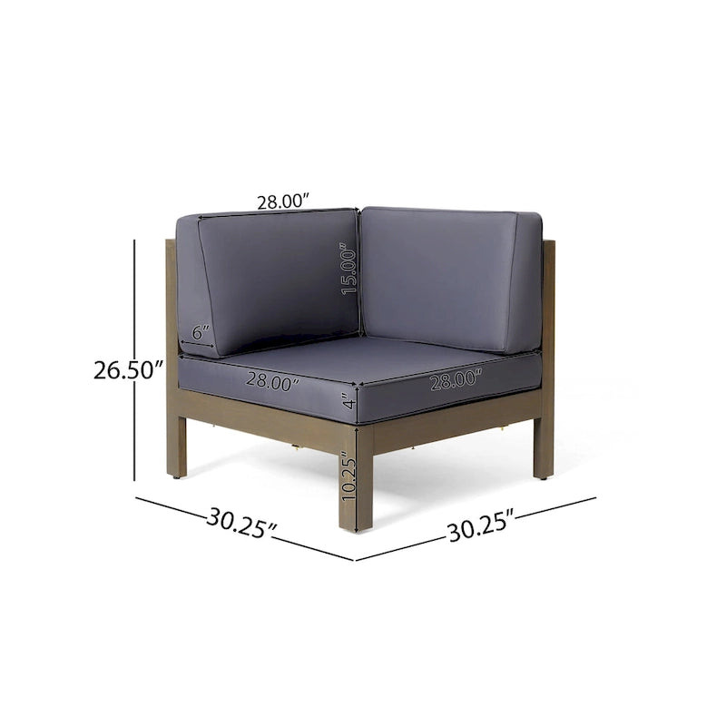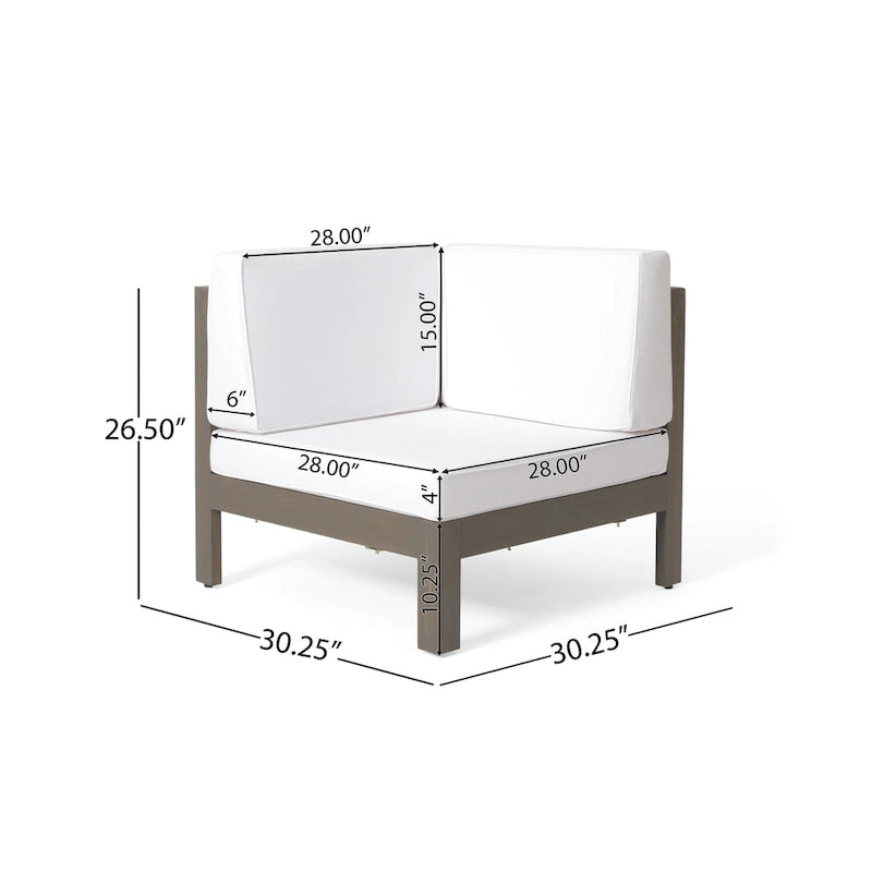 - Corner Chair Seat Dimensions: 28.00 inches deep x 28.00 inches x 10.25 inches high