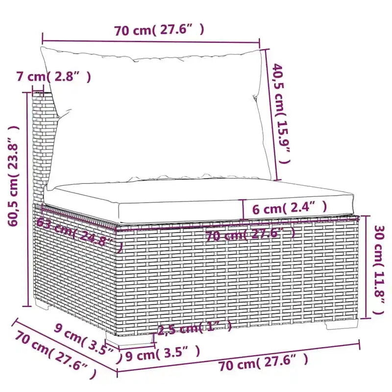 vidaXL Patio Lounge Set Outdoor Sectional Sofa Set Table Garden Poly Rattan - 27.6 x 27.6 x 23.8
