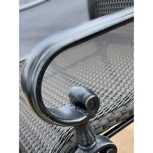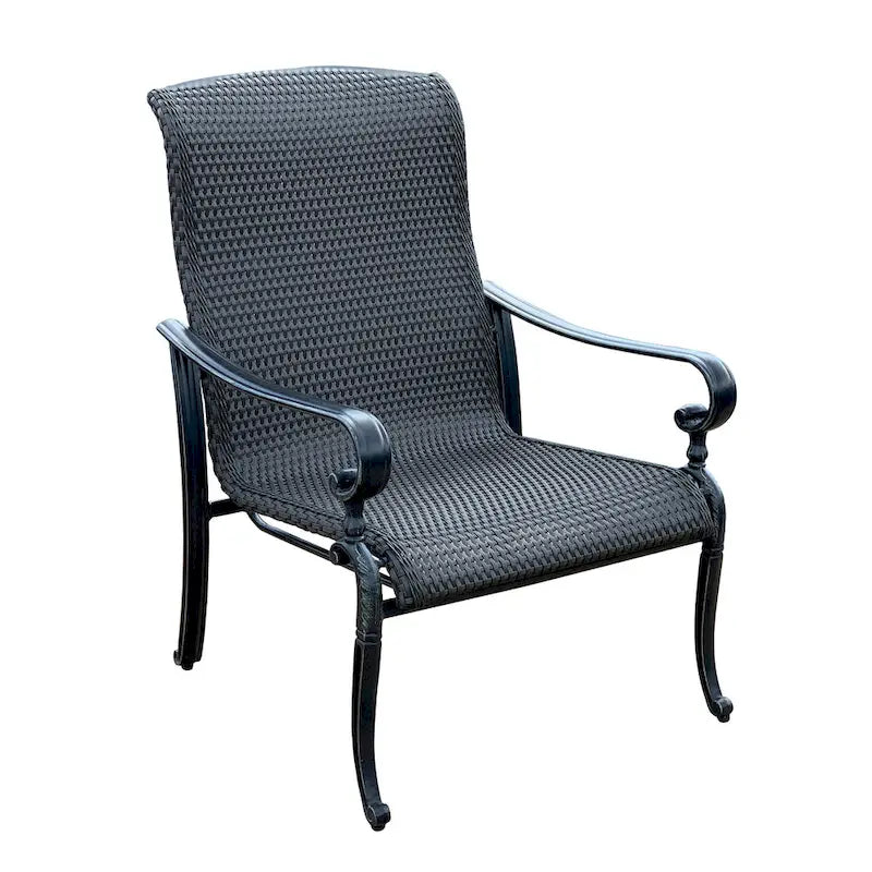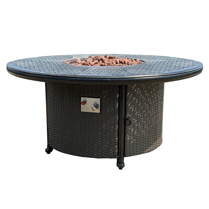 Bridgeton Moore introduces the pinnacle of outdoor leisure with the Wyndemere Ultimate Outdoor Firepit Chat Table with Club Chairs and All-Inclusive Party Conversion Package. This set redefines backyard gatherings, combining functionality and style like never before. At the heart of this set lies the Ultimate Party Table, offering unparalleled versatility. This innovative table features a propane gas-operated lava rock fire pit, effortlessly controlled with a simple switch. Additionally, it transforms into a wood-burning fire pit for a cozy ambiance, a barbecue grill for shared cooking experiences, and an ice bucket for refreshing drinks. The well-thought-out design ensures convenient storage of these accessories, enhancing your outdoor entertainment options. Designed for comfort and style, the Wyndemere Woven Outdoor Club Chairs boast a sleek ebony black finish with hand-applied silvery white accents. Their contoured backs and intricately woven UV and Split Resistant poly wicker weave provide both fashion and comfort. The chairs, along with the table, feature unique insignia collection details, adding a touch of sophistication to your outdoor space. Cast in aluminum, the chairs and table are built to withstand the elements, ensuring longevity and durability. With no assembly required for the chairs and only light assembly for the table, setup is effortless. The set includes an accessory package featuring essential items like a decorative fire pit ring, iron fire pit, safety net, aerator, grease trap, barbecue grill grid, and decorative standall neatly stored for easy access. Backed by Bridgeton Moore's esteemed quality standards and a 3-year warranty, this set guarantees both performance and peace of mind. Elevate your outdoor entertaining experience with the Wyndemere Ultimate Outdoor Firepit Table Set, where functionality meets elegance in every detail.