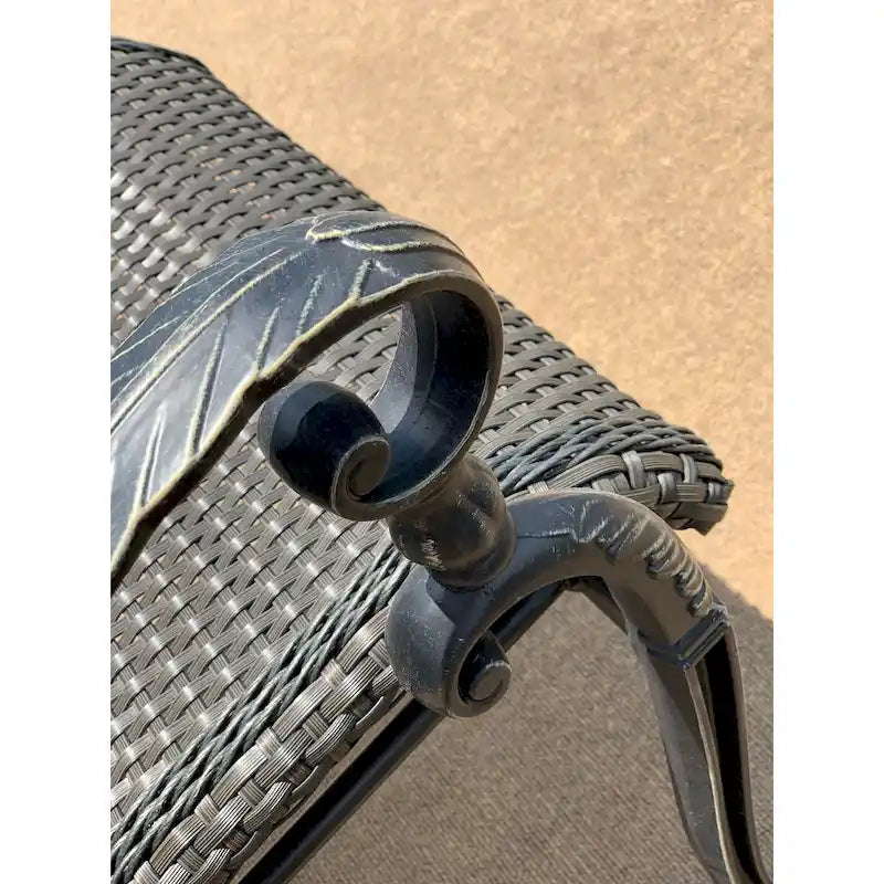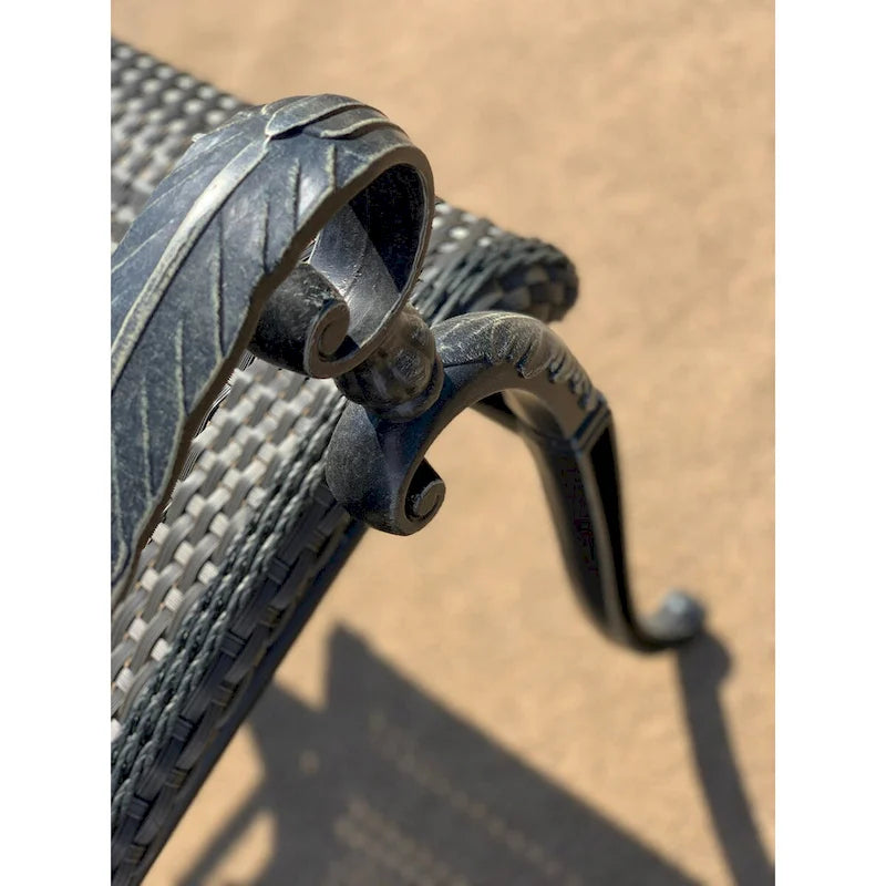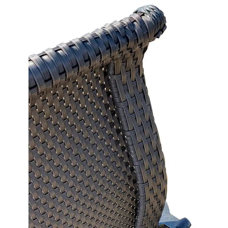 The Wyndemere Outdoor High Back Dining Chair, has a rich ebony black finish with hand-applied silvery white accents, enhancing its aesthetic appeal. The shapely contoured back, intricately woven in a unique pattern with all-weather UV and Split Resistant poly wicker weave, not only adds to its fashionable appearance but also ensures unparalleled comfort. Sold separately, this dining chair is versatile enough to serve as an outdoor bistro seat or be paired with either of the Wyndemere Dining tables, available in large oval or round shapes, for a complete dining set. Crafted from 100% aluminum, these chairs are built to last and will never rust. Fully welded prior to finishing, they epitomize Bridgeton Moore's commitment to quality, with no assembly required. Constructed using the best manufacturing techniques, Bridgeton Moore sets high brand quality standards, offering a 3-year warranty on all frames and finishes under normal conditions. covers are recommended for year-round outdoor exposure and regular cleaning of the surface to remove debris. Enjoy the ultimate dining experience with the Wyndemere Outdoor High Back Dining Chair, where style, comfort, and durability converge seamlessly