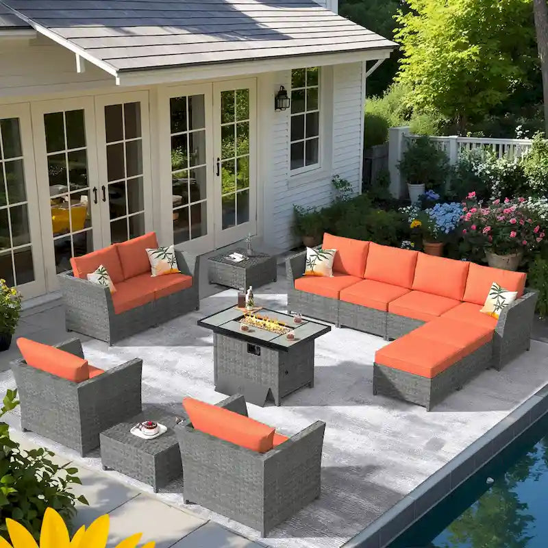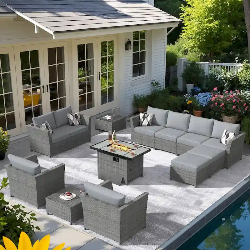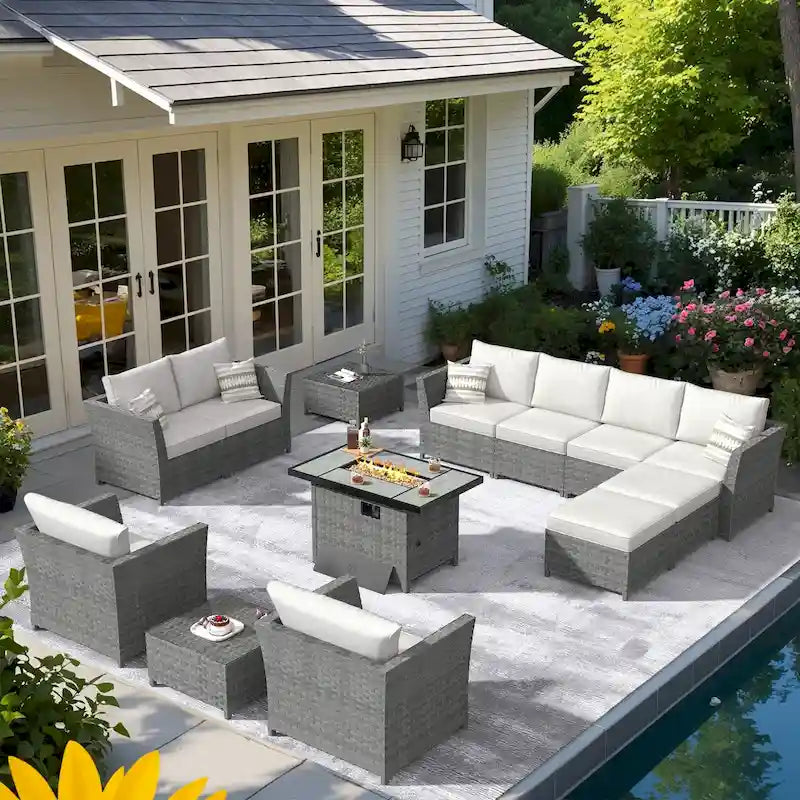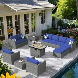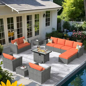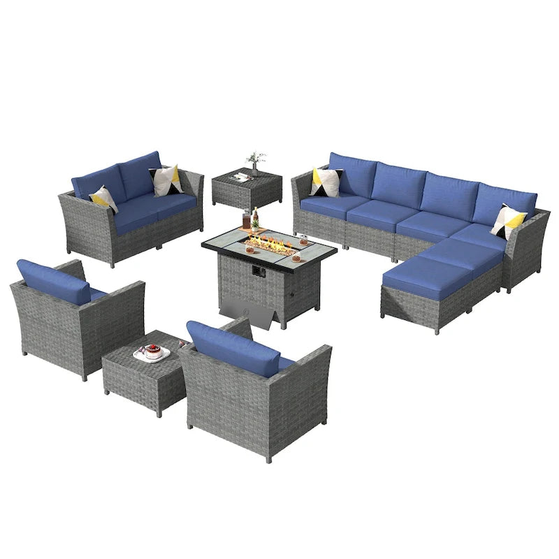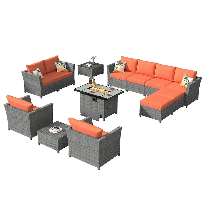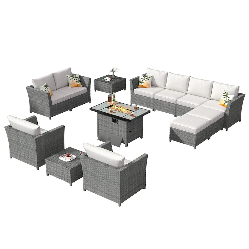 XIZZI 13-piece Patio Furniture Outdoor Wicker Sectional Set with Fire Pit