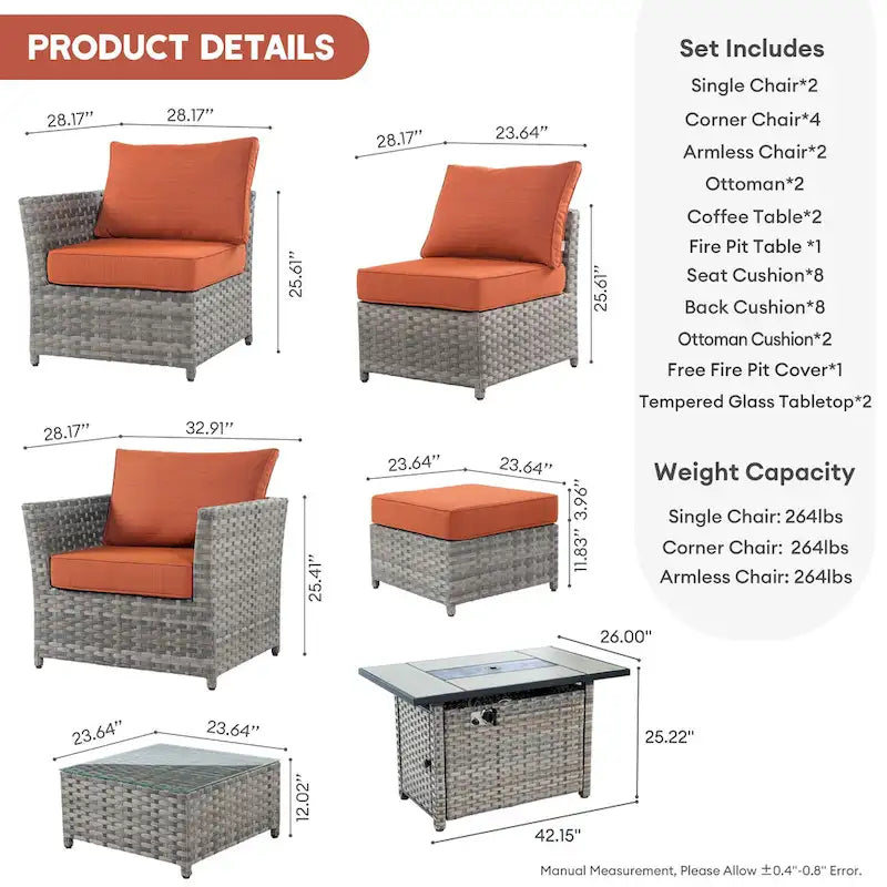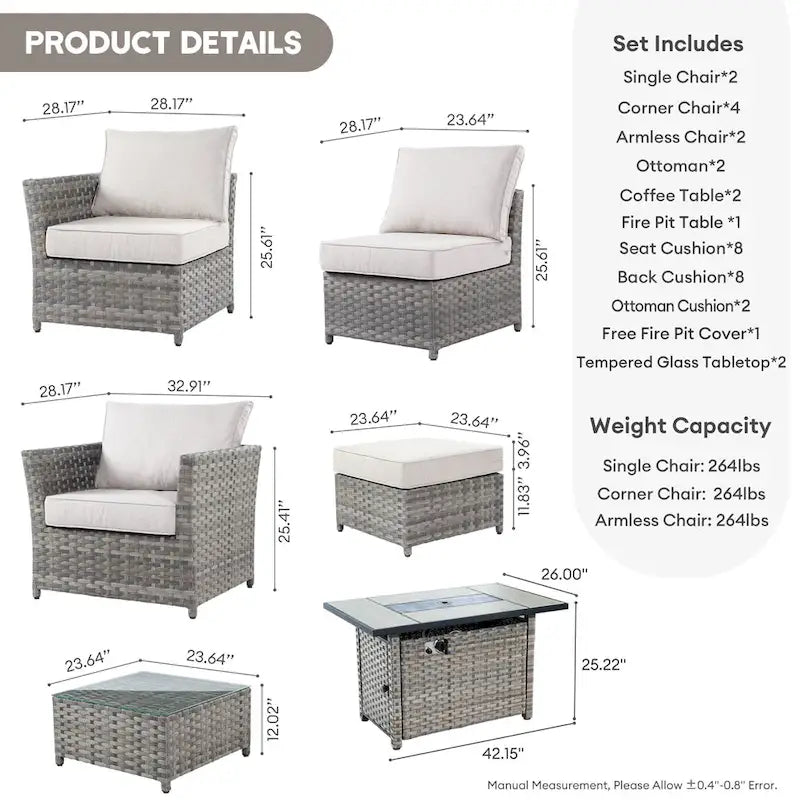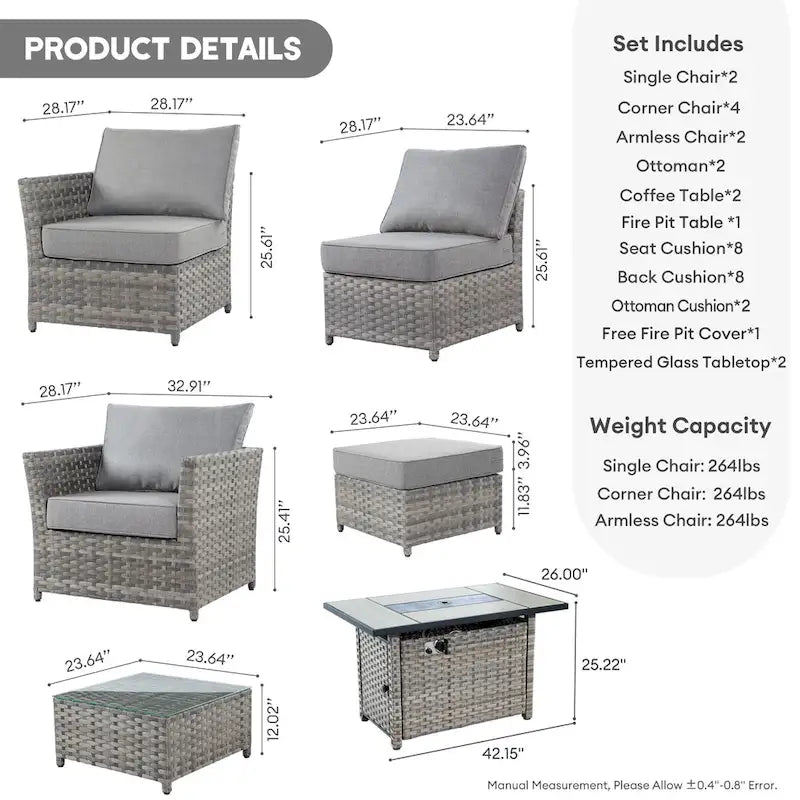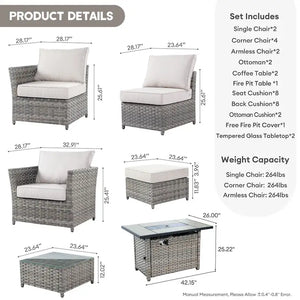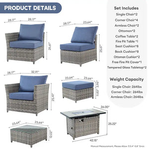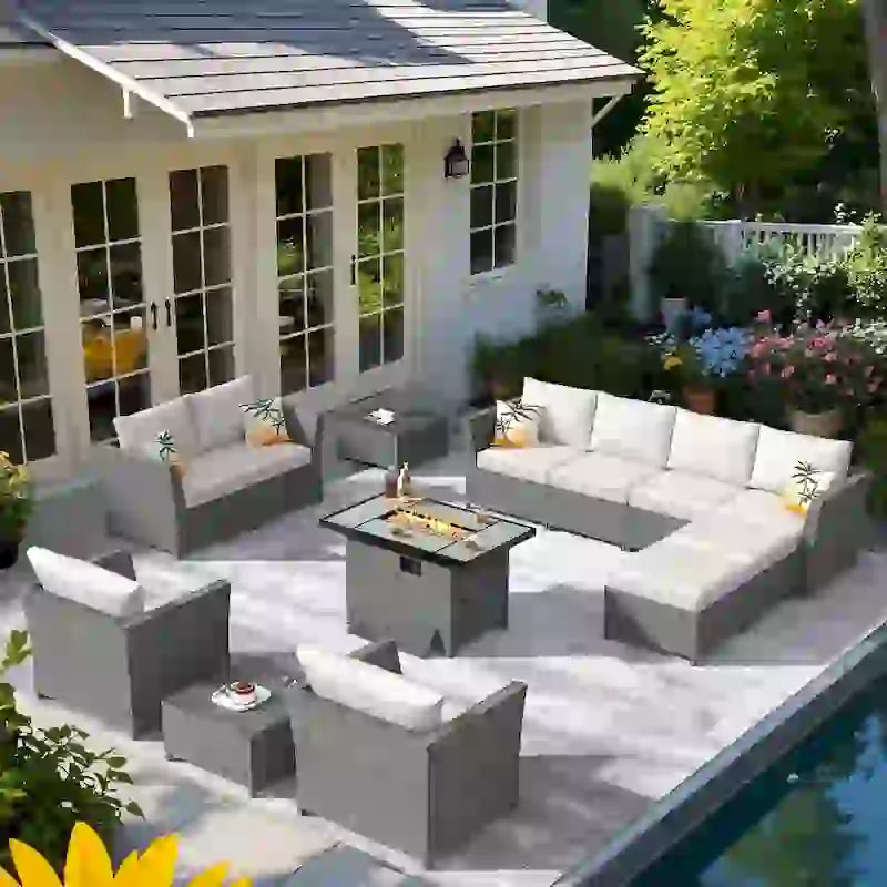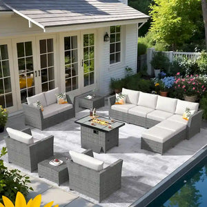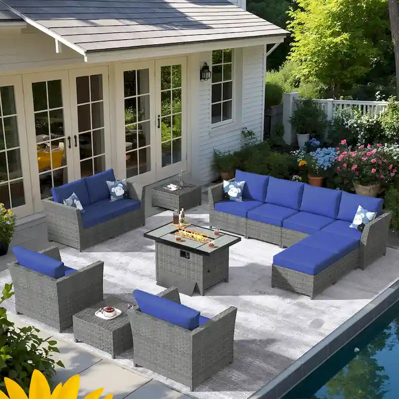 XIZZI 13-piece Patio Furniture Outdoor Wicker Sectional Set with Fire Pit