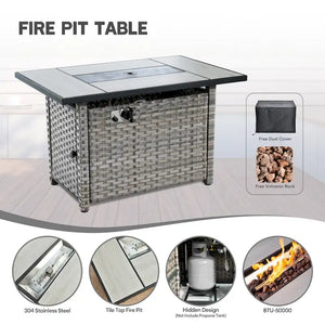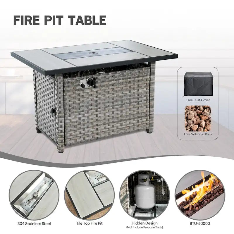 - The fire pit with ceramic tiles table top is heat-resistant and easy to clean